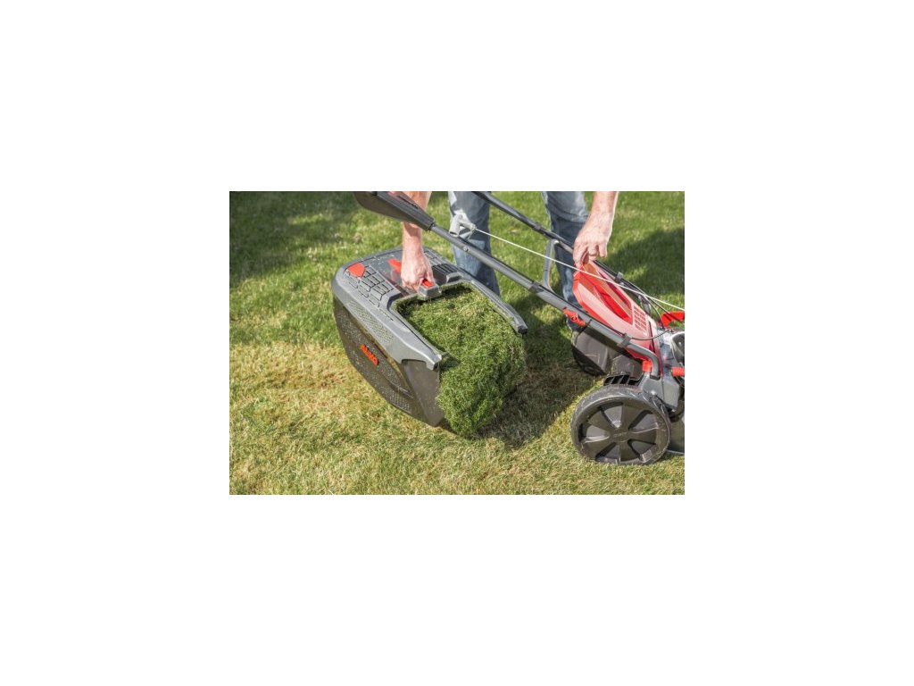 Vysoký stupeň inovací a moderní design. Všechny tyto vlastnosti kombinují naše sekačky řady "Comfort". Nejen díky tomu jsou benzínové sekačky AL-KO ideálním pomocníkem při péči o váš trávník. Benzínová sekačka Comfort 46.0 SPI-B Elegantní a pohodlná, tak se prezentuje benzínová sekačka Comfort 46.0 SPI-B od AL-KO. Tato sekačka byla vyvinuta v Německu a vyrobena v rakouském Obdachu. Životnost benzínové sekačky zvyšují vybrané komponenty a kvalitní materiály. Sekačky řady Comfort - potěšení při práci na vaší zahradě! Technické údaje benzínové sekačky Comfort 46.0 SPI-B Plus Benzínová sekačka na trávu s pracovní šířkou 46 cm umožňuje efektivní sečení travních ploch až do velikosti 1400 metrů čtverečních. Výšku sečení lze nastavit centálně v 7 krocích od 30 mm do 80 mm pro dokonalé přizpůsobení vašim požadavkům. Výkon zajišťuje benzínový motor Briggs & Stratton 475 iSi InStart s 2,2 kW s inovativní technologií elektronického startování. Díky funkci 3INONE lze trávník posekat a dokonale dopravit do sběrného koše o velikosti 60 l, který disponuje ukazatelem stavu naplnění, nebo je možné posekanou trávu mulčovat a tím dodat potřebné hnojivo pro váš trávník. Skvělá aerodynamika sekačky s technologií MaxAirflow zaručuje úplné naplnění koše, což v důsledku znamená, že koš nemusíte vyprazdňovat tak často, jako je tomu u konkurenčních sekaček. Pohodlí při práci zvyšuje ergonomicky tvarovaná rukojeť a XXL kola s kuličkovými ložisky a jednorychlostním pohonem. Nákup benzínové sekačky Comfort 46.0 SPI-B Plus a alternativy Jednoduše kupte benzínovou sekačku Comfort 46.0 SPI-B Plus přímo na našem e-shopu, nebo navštivte autorizovaného prodejce se zahradní technikou. Tato sekačka je účinným pomocníkem pro vaší zahradu za atraktivní cenu. Chtěli byste benzínovou sekačku s větší šířkou záběru? Pak doporučujeme benzínovou sekačku Comfort 51.0 SP-B.Úsporný 1-rychlostní pohon kolElektrický start pomocí klíče včetně Li-Ion akumulátoruKomfortní centrální nastavení výšky sečeníTělo z ocelového plechu s technologií MaxAirflow pro nejlepší vlastnosti sečení a sběruErgonomicky tvarovaná rukojeť pro větší pohodlíXXL kola s kuličkovými ložisky pro snadné ovládáníSběrný koš s indikátorem naplněníIntegrované transportní držadlo pro snadnou manipulaciDodatočné parametre
