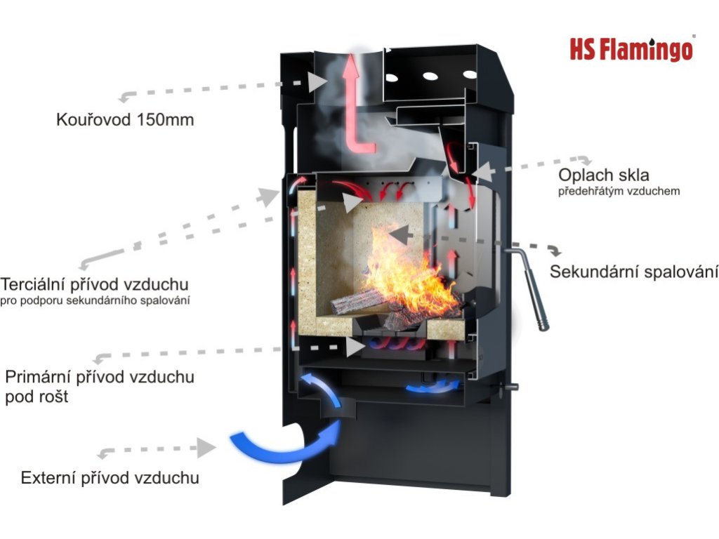 - ✅ Spaľovanie: Sekundárne spaľovanie, krásne čisté sklo a externý prívod vzduchu je u kachlí HS Flamingo samozrejmosťou.