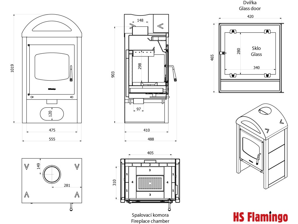 | Rozměr topeniště (Š x V x H): | 405 x 280 x 310 mm |