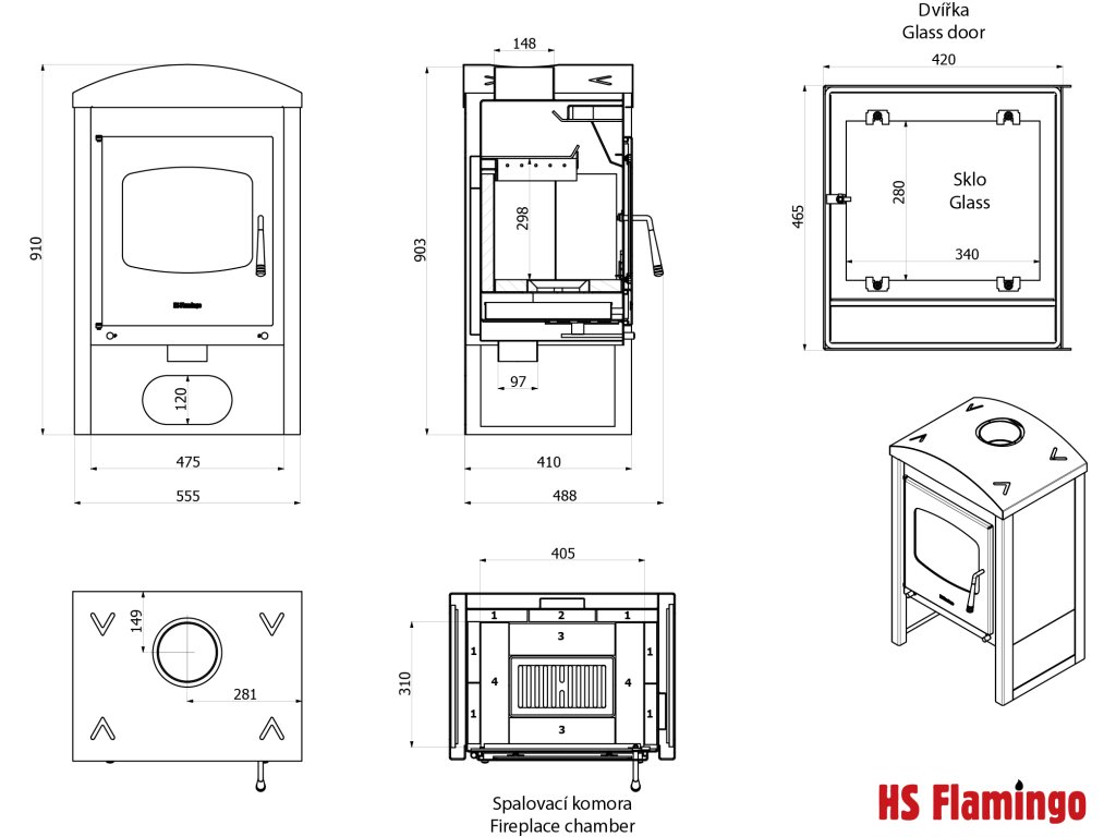 Rozměr topeniště (Š x V x H): | 405 x 280 x 310 mm |