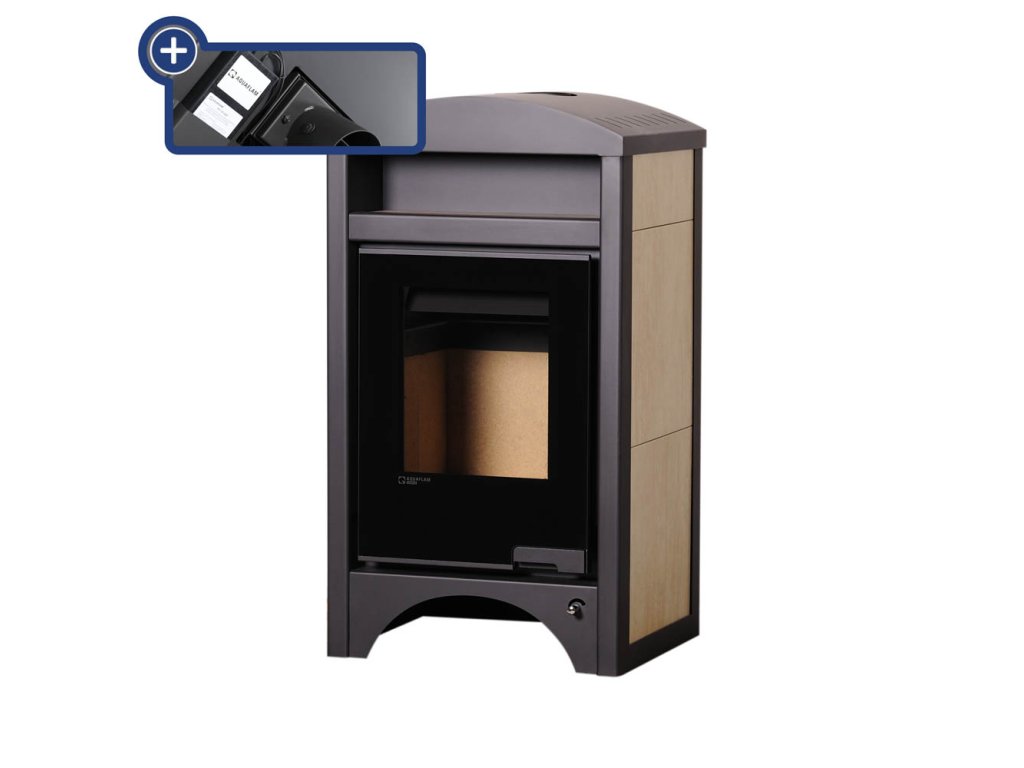 teplovodní krbová kamna s 5 kW výměníkem a el. regulací HS Flamingo BARMA 11/5 Javor ER + vysávač na popol MINiCEN 800W
