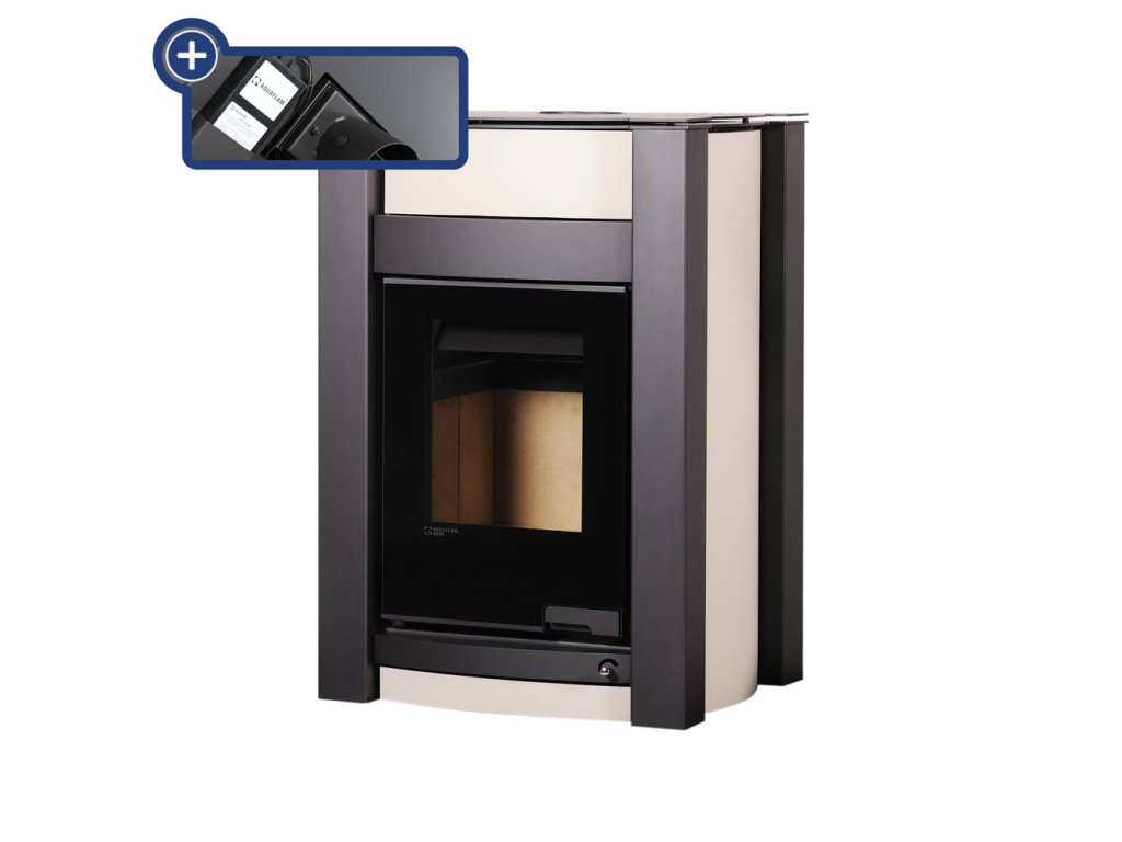 teplovodní krbová kamna s 5 kW výměníkem a el. regulací HS Flamingo KALMAR 11/5 krém ER