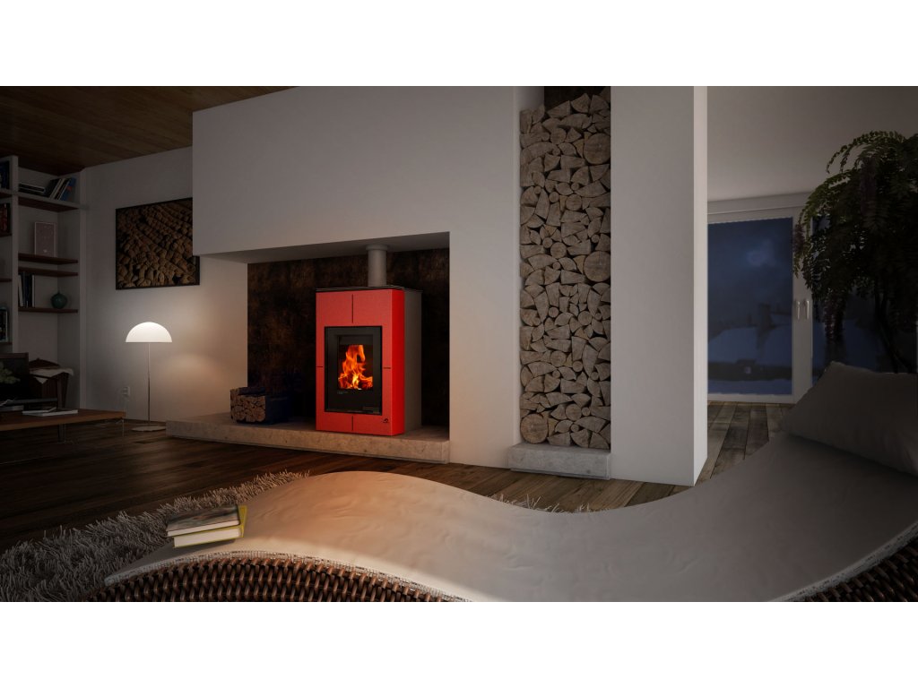 teplovodní krbová kamna s 5 kW výměníkem HS Flamingo SAPORO 11/5 červená