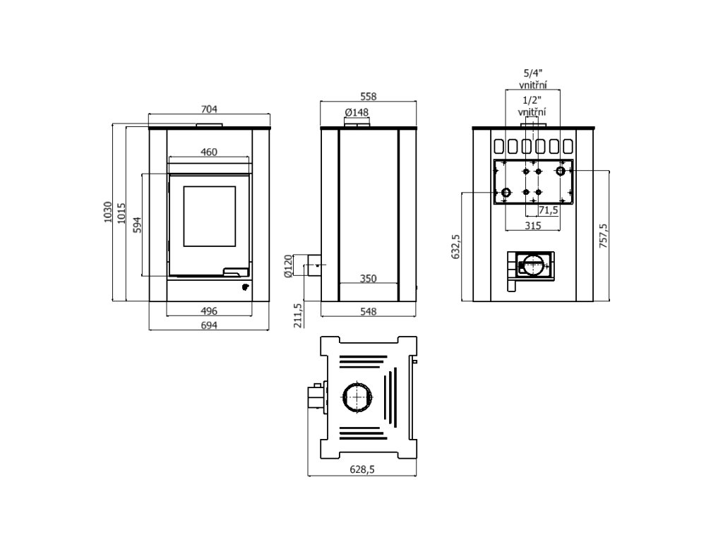 | Typ kamen: | teplovodní, dvouplášťová, konvekční |