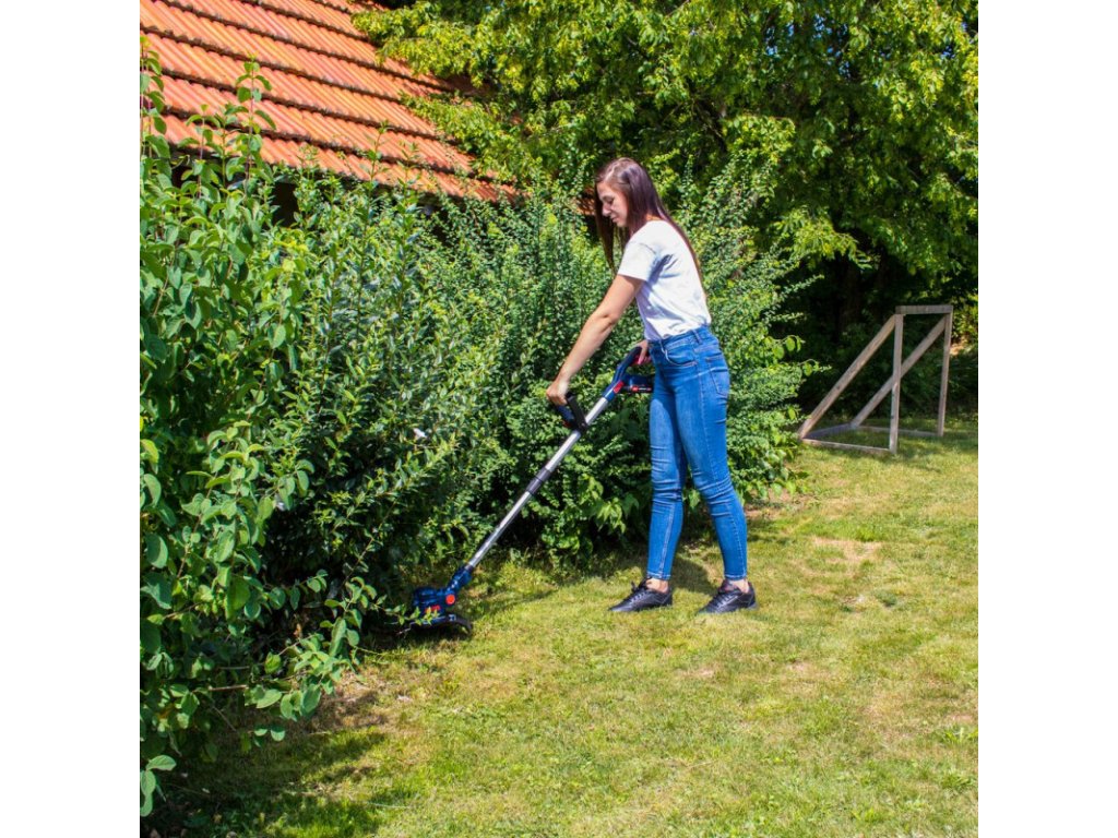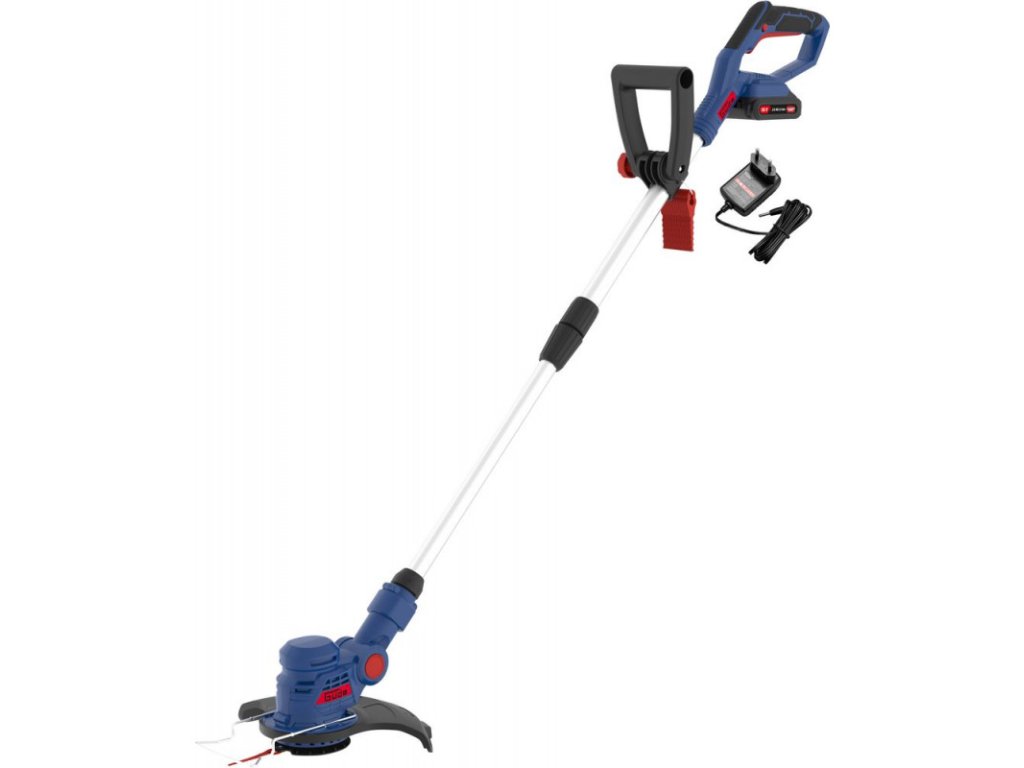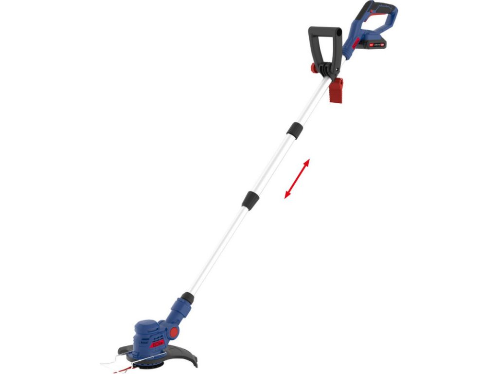 Akumulátorový vyžínač so systémom batérie 18V E³. Dvojité nože pre efektívnu prácu, trimovacia hlava otočná o 180° a sklopná do 5 polôh, teleskopická rukoväť, prídavná rukoväť, uloženie náhradných nožov v prídavnej rukoväti, strmeň pre ochranu rastlín, Softgrip rukoväť. Vrátane 20 náhradných nožov, batérie 2,0 Ah a nabíjačky 0,5 A.Napájacie napätie: 18 VOtáčky motora: 9000 min-1Trieda ochrany: IIIŠírka rezu: 255 mmMinimálna pracovná výška rukoväte: 1040 mmMaximálna pracovná výška rukoväte: 1390 mmOtáčanie trimovacej hlavy: 90° / 0° / 90°Akumulátor:Napätie: 18 VTyp batérie: LI-IonKapacita batérie: 2.0 AhSpotreba batérie: 36 WhDoba nabíjania: 288 min.Hmotnosť: 0,4 kgNabíjačka:Vstupné napätie: 100 - 240 VPríkon: 13 WFrekvencia nabíjačky: 50 - 60 HzVýstupné napätie: 22 VVýstupný prúd: 0,5 ATrieda ochrany nabíjačky: IIHmotnosť: 0,08 kgHladina hluku LwA: 96 dBRozmery (DxŠxV): 277 x 245 x 1390 mmHmotnosť netto/brutto: 2,4 kg/3,7 kgDodatočné parametre