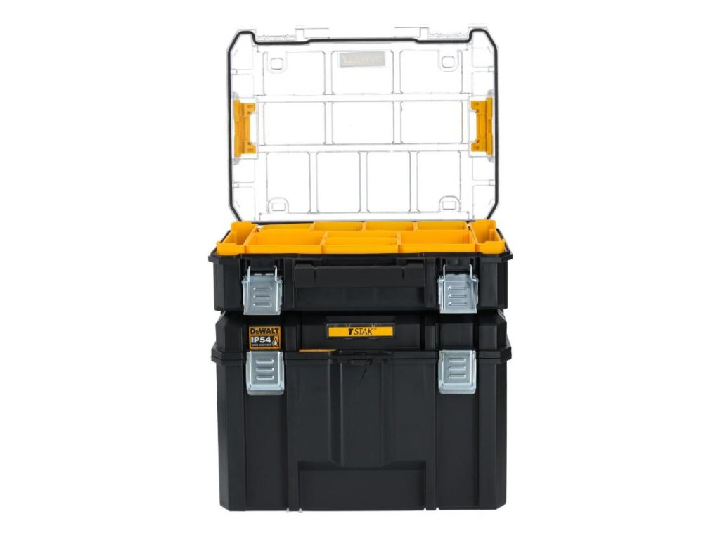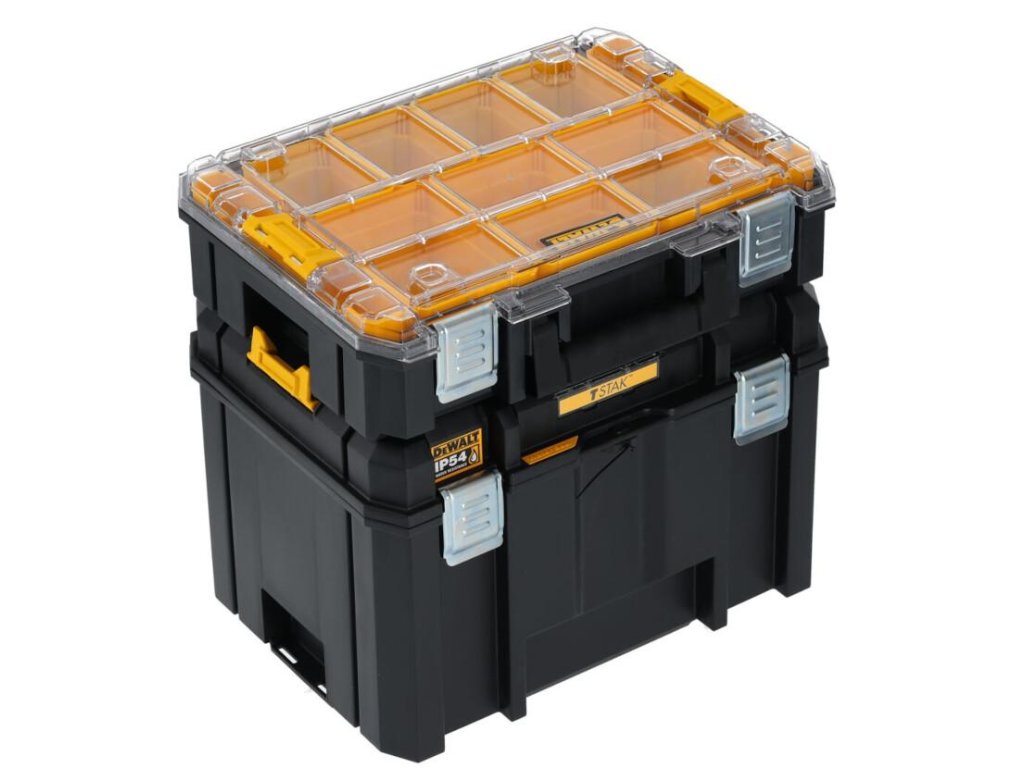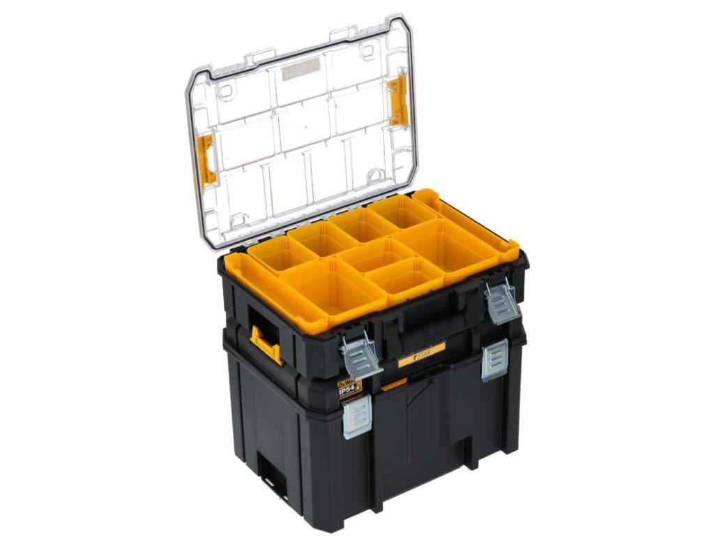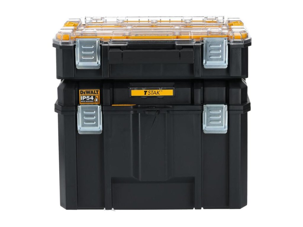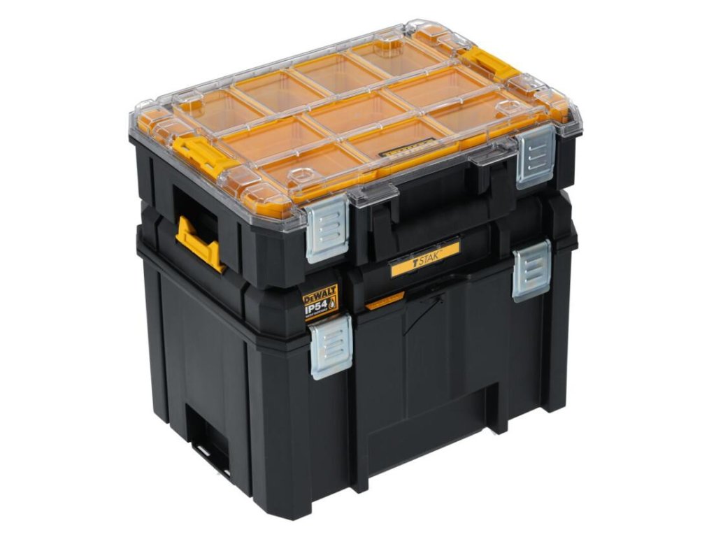 - Obsahuje: DWST83346-1 (Box na náradie s objemom 23 litrov) a DWST82968-1 (Organizér s priehľadným vekom s objemom 7,8 litra).