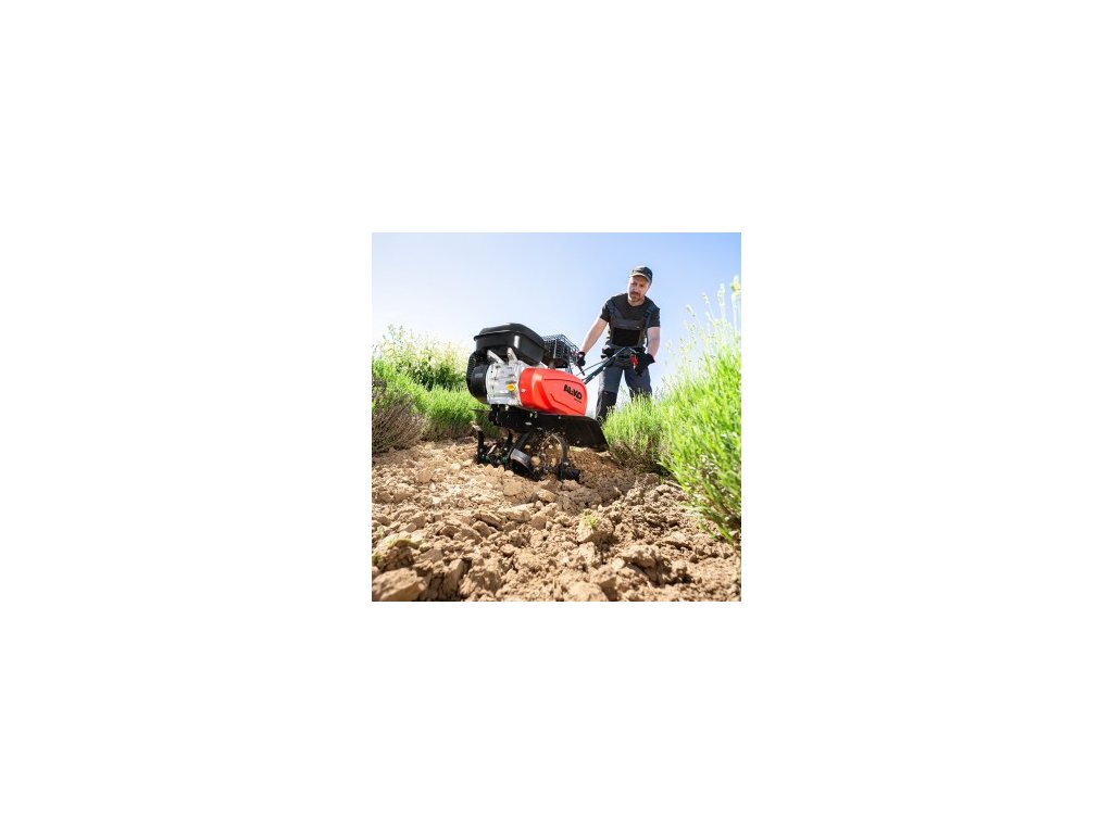 Benzínov kultivátor AL-KO strednej triedy MH 540 Comfort - aj na väčšie plochy Motorový kultivátor MH 540 Comfort je váš robustný, manévrovateľný pomocník pre efektívne a časovo nenáročné použitie vo vašej záhrade. Či už na kultiváciu, prevzdušňovanie alebo kyprenie pôdy: S touto motorovou plečkou môžete pôdu pred sejbou dobre pripraviť, kypriť a zapracovať do nej živiny, hnojivo alebo čerstvú ornicu. Vhodné aj na väčšie plochy. Ideálna motorová motyčka pre hobby záhradkárov. Dopredu alebo dozadu Motorový kultivátor MH 540 Comfort mimoriadne uľahčuje kyprenie aj na väčších plochách. To znamená, že na rezanej ploche môžete pracovať efektívne a s minimálnym úsilím. Motyka má pracovnú šírku 54 cm a štyri sady sekacích nožov zaisťujú jemnú, drobivú pôdu do hĺbky 33 cm. Zníženie práce oproti ručnej práci s rýľom, ručnou motykou a hrabľami je obrovské. Aktívne pracujúce, špeciálne tvarované štyri sady sekáčov poháňa výkonný 3,45 kW motor. To znamená, že zariadenie strednej triedy s hmotnosťou 51 kg má potrebnú ťažnú silu. Pomocou 3-smerne nastaviteľnej brzdovej ostrohy môžete nastaviť pracovnú hĺbku podľa potreby. S prevodom vpred a vzad. Mimoriadne stabilné, ergonomické riadidlá sú ideálne pre prácu v príjemnej polohe. Prepravné koleso možno ľahko nastaviť z pracovnej do prepravnej polohy bez použitia náradia. Bezpečnosť je kľúčová: Bezpečnostná ručná páka účinne zabraňuje neúmyselnému otáčaniu sekacích nožov. Kvalitný kryt sekacích nástrojov z robustného oceľového plechu navyše chráni obsluhu pred odletujúcimi kameňmi a zeminou. Kúpte si benzínový kultivátor AL-KO MH 540 Comfort & alternativy Kúpte si motorovú motyčku MH 540 Comfort teraz v našom internetovom obchode alebo u niektorého z našich špecializovaných predajcov. Ak chcete väčší, výkonnejší motorový kultivátor, odporúčame motorový kultivátor MH 770 (č. položky 113971).Vhodné najmä na kyprenie pôdy alebo prípravu na sejbu, a to aj na väčších plocháchObzvlášť stabilná, ergonomická rukoväť3-násobne výškovo nastaviteľná brzdová ostroha na nastavenie správnej pracovnej hĺbkyPrepravné koleso sa dá pohodlne a bez náradia sklopiť4 aktívne kultivačné nože s pracovnou šírkou 36 cm na účinnú kultiváciuDodatočné parametre