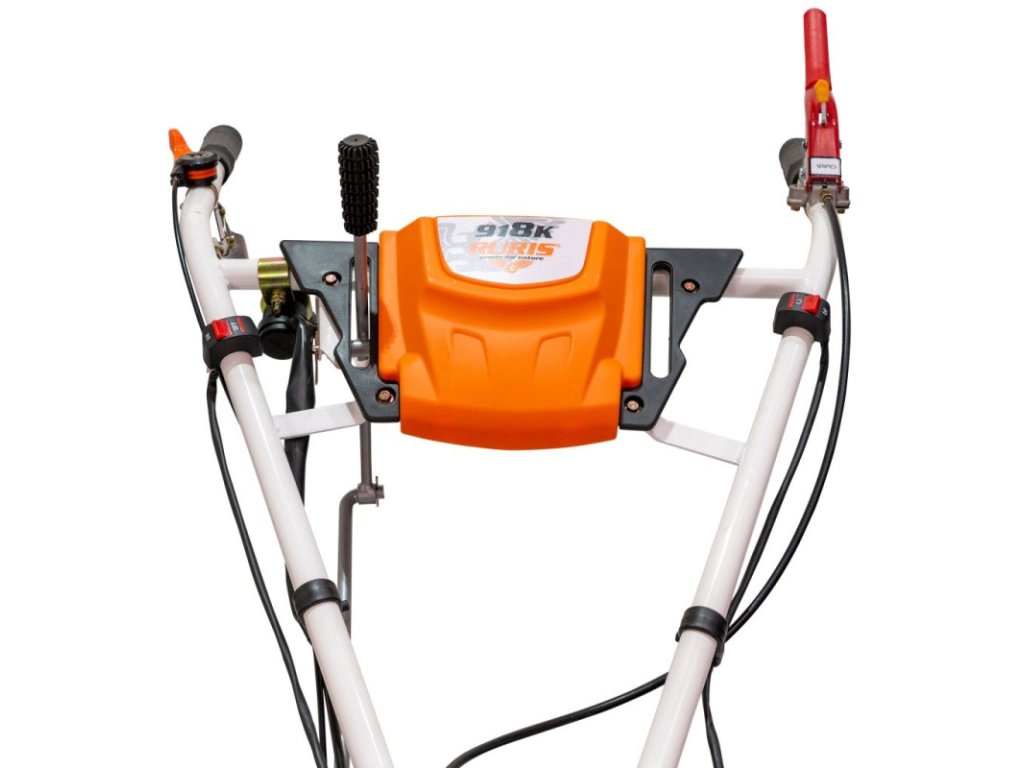 RURIS 918ACC , hoci váži 146 kg, sa dá ľahšie ovládať vďaka nahor nastaviteľným kovovým madlám a gumeným rukovätiam určeným na tlmenie vibrácií generovaných motorom.