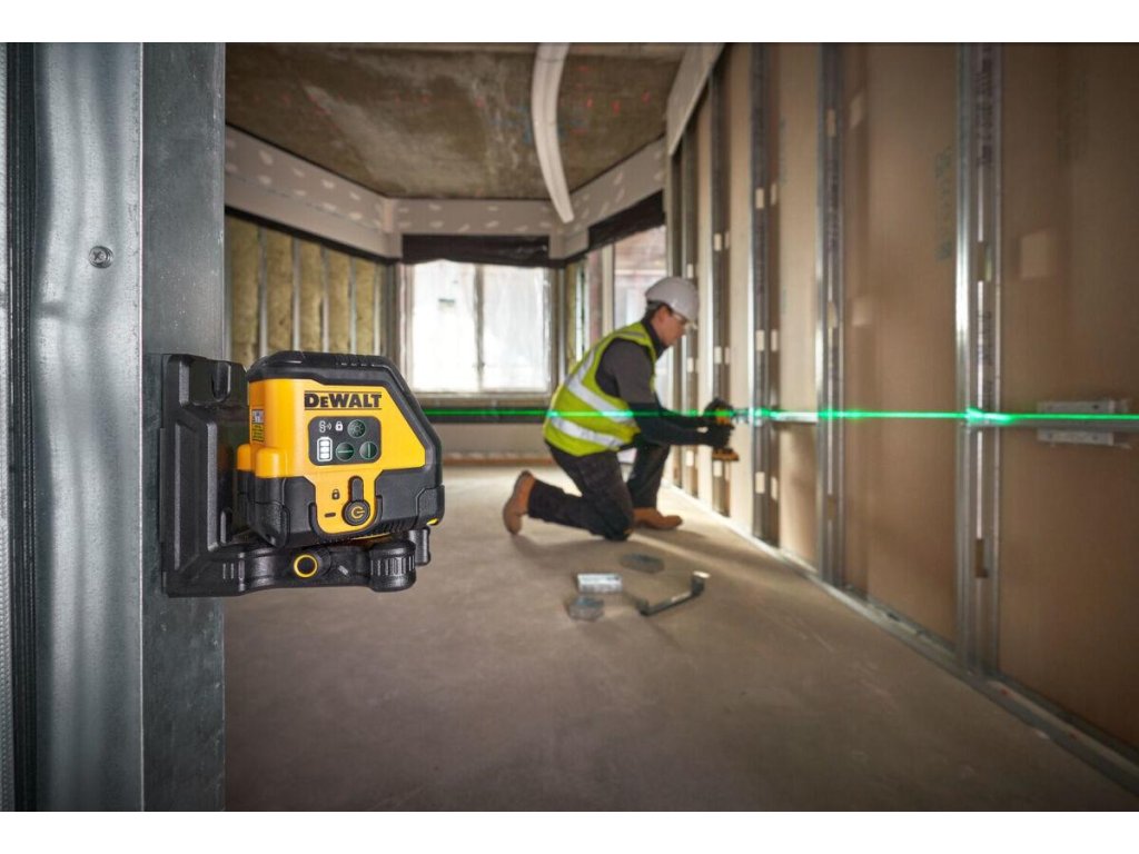 - Krížový laser so zeleným lúčom DEWALT DCLE14201GB USB je ľahký krížový laser s dosahom 45 m, ktorý využíva technológiu POWERSTACK™.