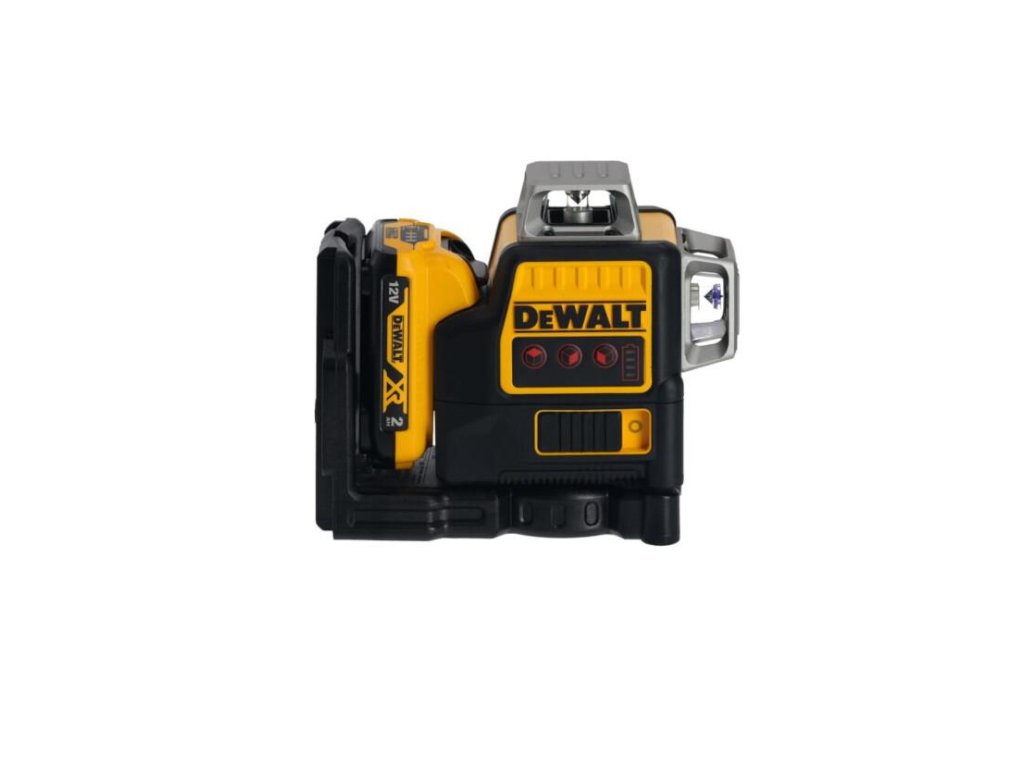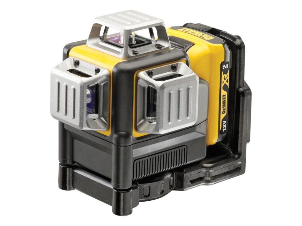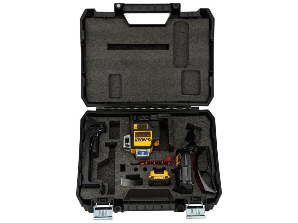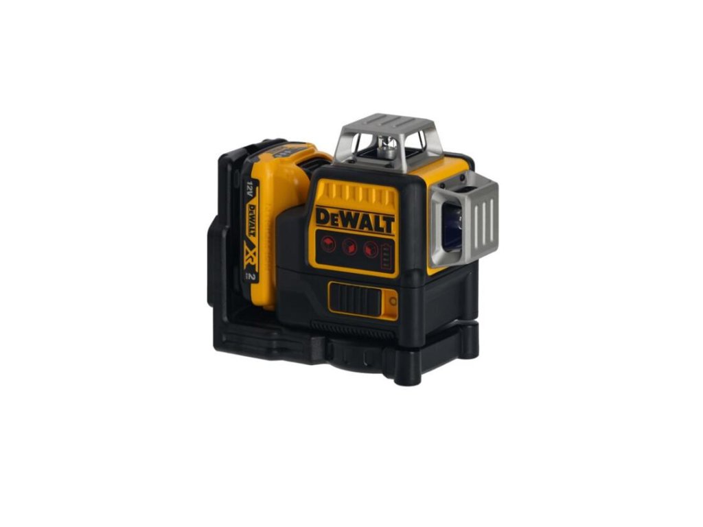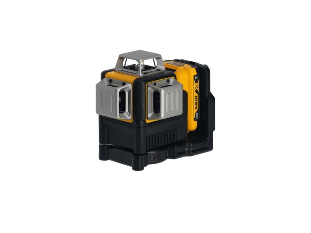 - Krížový laser s automatickým vyrovnaním 3× 360° napájaný DeWALT akumulátorom 10,8 V.