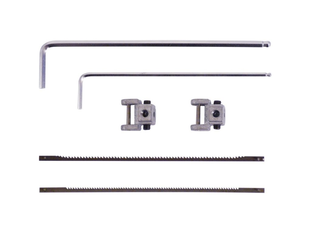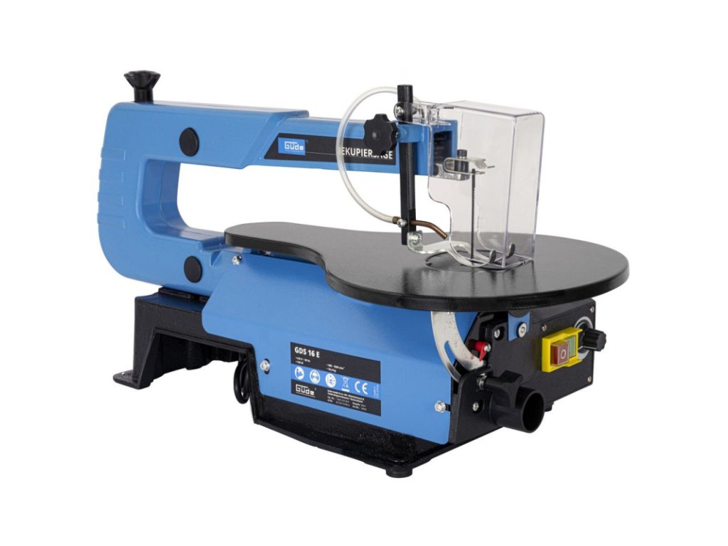 Vyrezávacia píla na presné vyrezávanie do dreva a plastov, s plynulou reguláciou otáčok. Základný podstavec z oceľovej liatiny, stôl otočný o 45°, ventilátor pre čistenie reznej dráhy. Vypínač pri nulovom napätí, nastaviteľné otáčky, otvory pre upevnenie k stolu. Ideálna pre modelárstvo a remeselné práce s drevom a plastom. Vrátane pílových listov 1x 20 Z/" a 2x 15 Z/".