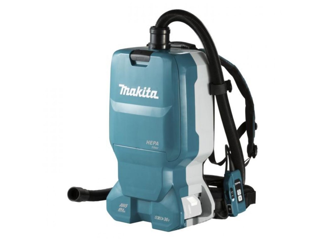 - Chrbtový vysávač napájaný 2 lítium-iónovými 18 V batériami určenými na prevádzku na sucho