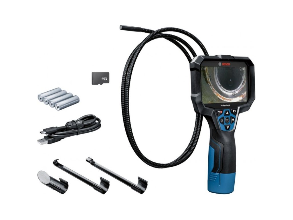 Inšpekčná kamera GIC 12V-5-27 C Professional prináša nový komfort pre montérov HVAC/inštalatérov, elektrikárov alebo automechanikov. Tento ergonomický prístroj je vybavený displejom veľkosti 5" s veľmi vysokým rozlíšením 1 280 × 720 pixelov na podrobný pohľad pri prieskume rúr, kanálov alebo iných ťažko dostupných miest. Bez ohľadu na to, kam smeruje hlava kamery, nie je potrebné pri používaní skúmať orientáciu snímky, pretože jedinečná funkcia AutoUp zaručuje automatické otočenie obrazu. Táto odolná kamera je navrhnutá tak, aby zvládla prach a vodu na náročných pracoviskách. Hlava kamery disponuje stupňom ochrany IP67 a je chránená pred prachom a po krátku dobu pred ponorením do vody; prístroj má triedu ochrany IP54 pred prachom a striekajúcou vodou. Táto inšpekčná kamera je vynikajúco prispôsobená na rozmanité remeselné práce, ako napr. kontrolu vnútra rozvodných skríň, rúr a dutín v stenách, ako aj na kontrolu hydraulických systémov a použitie v automobilovom priemysle. Snímky a video zaznamenané GIC 12V-5-27 C Professional je možné ľahko prenášať prostredníctvom kábla USB-C® alebo karty Micro-SD.