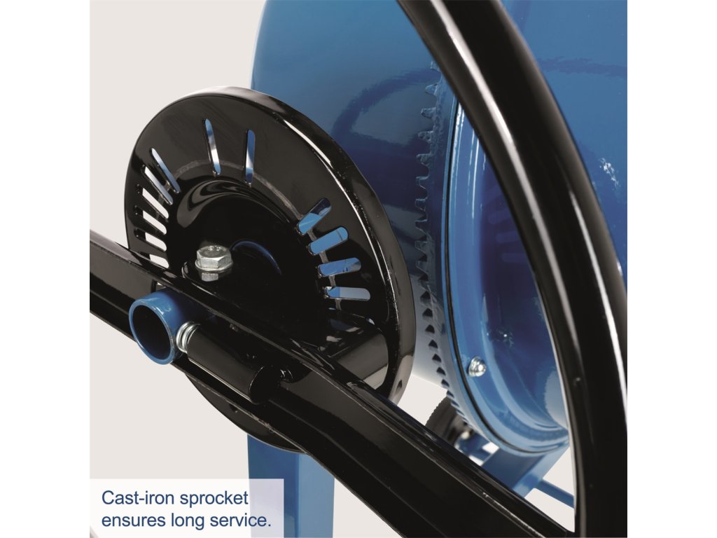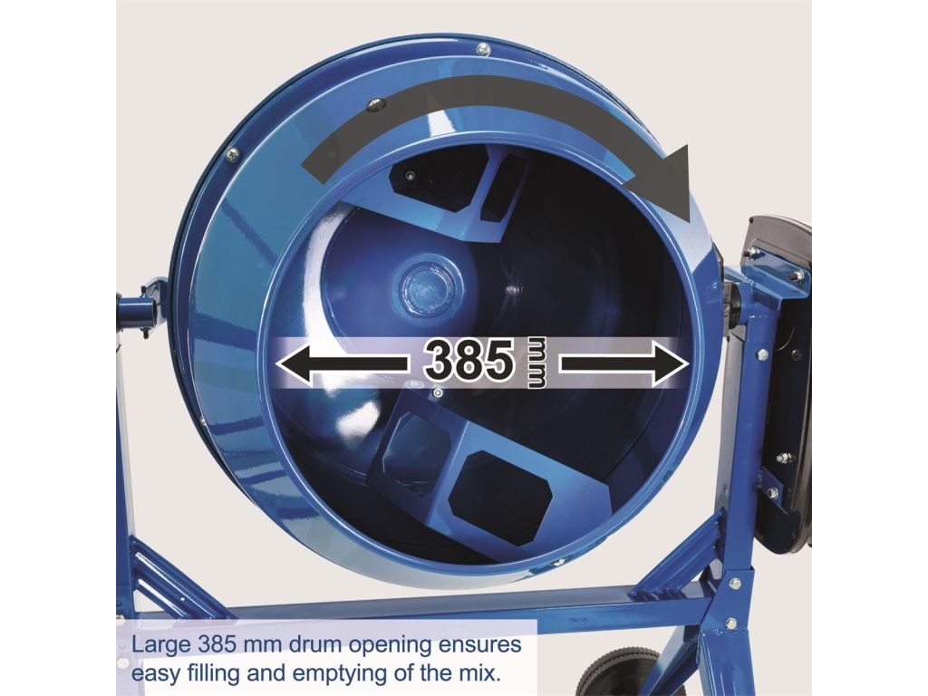 - 🔄 Kvalita miešania: Špeciálne navrhnutý dizajn lopatiek a roboticky navarené, vystužené dno bubna zaručujú homogénne premiešanie bez nepremiešaných oblastí.