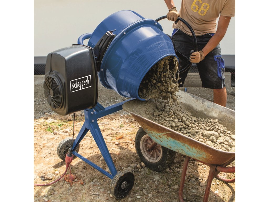 - Stavebná miešačka Scheppach MIX 125 (súčasť je bubon, motor, rám, ovládacie koleso).