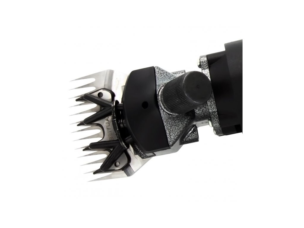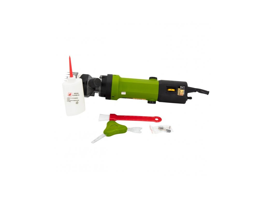 Strojek SC2400 pro stříhání ovcí a koz a jiných hospodářských zvířat. Strojek je vybaven 350W elektromotorem nové generace, který umožňuje vyvinout vysokou rychlost s možností nastavení požadované rychlosti v rozsahu od 0 do 2400 ot./min pro různé druhy vlny a vylepšeným systémem chlazení vzduchem, který zabraňuje přehřátí. Kvalitní ložiska zajišťují nízkou hlučnost a nízké vibrace při stříhání ovcí. Nůžky na stříhání ovcí jsou vybaveny odolnými čepelemi z uhlíkové oceli a mají šířku řezu 76 mm. Nechybí ani upínací šroub, který umožňuje upravit utažení nožů. Dlouhý kvalitní 5m přívodní kabel, ergonomická pogumovaná rukojeť zajišťuje pohodlnou práci. Stroj na stříhání ovcí je založen na komponentech vysoké úrovně a je určen pro použití při stříhání stáda ovcí do 1000 hlav. Součástí dodávky je montážní klíč, přepravní kufr, čistící štětec, nádoba na mazací olej a uhlíkové kartáče. Balení karton.