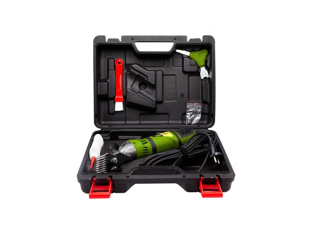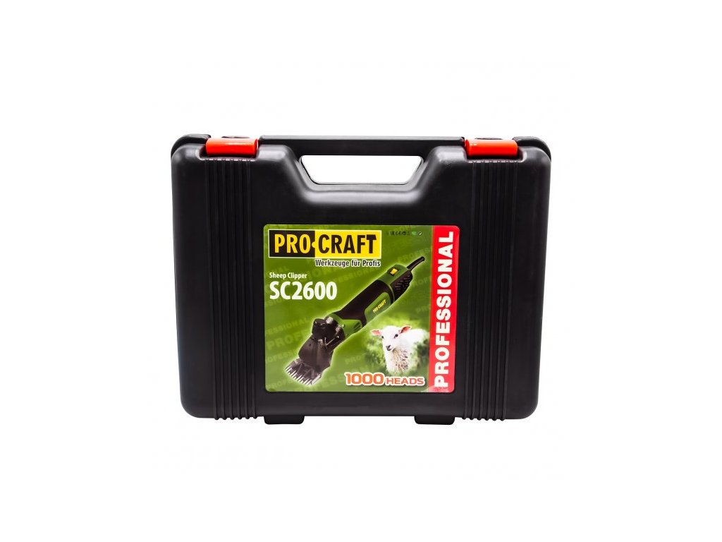 Strojek SC2600 pro stříhání ovcí a koz a jiných hospodářských zvířat. Strojek je vybaven 500W elektromotorem nové generace, který umožňuje vyvinout vysokou rychlost s možností nastavení požadované rychlosti v rozsahu od 0 do 2600 ot./min pro různé druhy vlny a vylepšeným systémem chlazení vzduchem, který zabraňuje přehřátí. Kvalitní ložiska zajišťují nízkou hlučnost a nízké vibrace při stříhání ovcí. Nůžky na stříhání ovcí jsou vybaveny odolnými čepelemi z uhlíkové oceli a mají šířku řezu 76 mm. Nechybí ani upínací šroub, který umožňuje upravit utažení nožů. Dlouhý kvalitní 5m přívodní kabel, ergonomická pogumovaná rukojeť zajišťuje pohodlnou práci. Stroj na stříhání ovcí je založen na komponentech vysoké úrovně a je určen pro použití při stříhání stáda ovcí do 1500 hlav. Součástí dodávky je montážní klíč, přepravní kufr, čistící štětec, nádoba na mazací olej a uhlíkové kartáče. Balení karton.