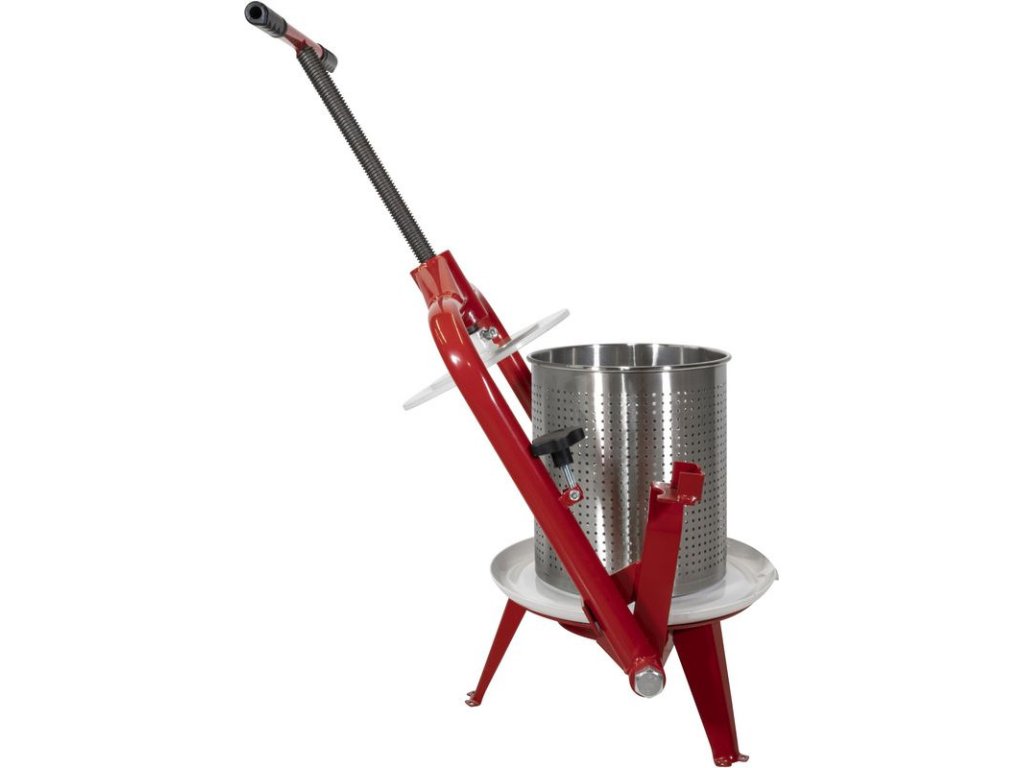 Lis na ovocie s mechanickým pohonom cez oceľové vreteno s ľahkým chodom. Vhodný na spracovanie jabĺk, hrušiek a iného ovocia. Lisovací kôš z perforovanej nehrdzavejúcej ocele, otočná a vyberateľná zberná miska, natretá zdravotne neškodnou potravinárskou farbou, masívny oceľový rám. Otočná tlačná doska pre lepšie plnenie. Jednoduché čistenie vďaka odoberateľnému lisovaciemu košu.Objem lisovacieho koša: 14 lVýška lisovacieho koša: 280 mmPriemer koša: 250 mmPriemer zbernej misky: 370 mmRozmery (DxŠxV): 560 x 440 x 740 mmHmotnosť netto/brutto: 20,2 kg/23,6 kgDodatočné parametre