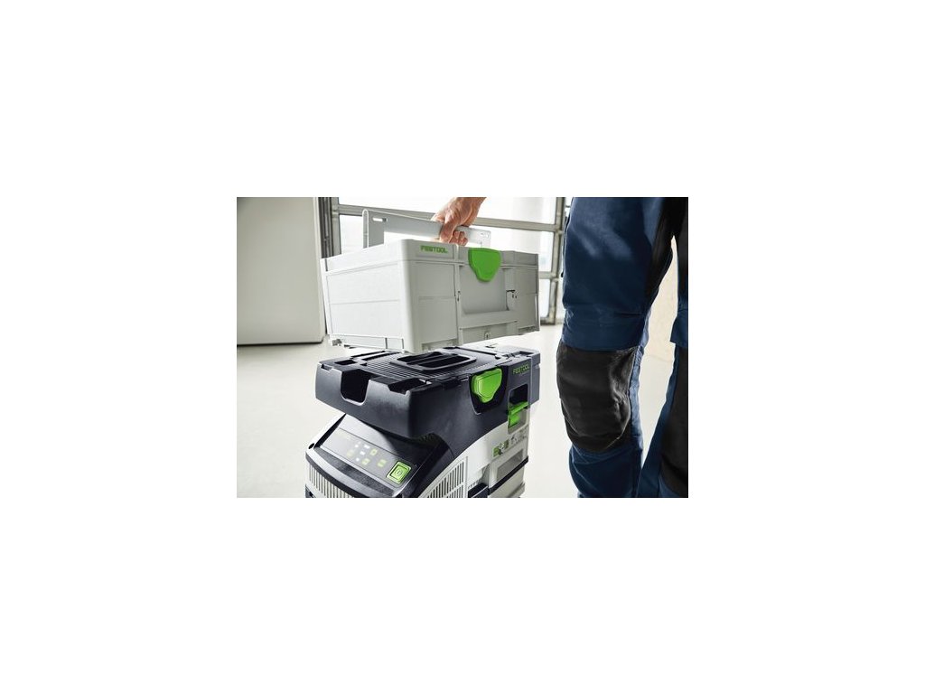 Stroj je súčasťou 18 V systému Festool a je plne kompatibilný s náradím vyžadujúcim odsávanie v triede M: