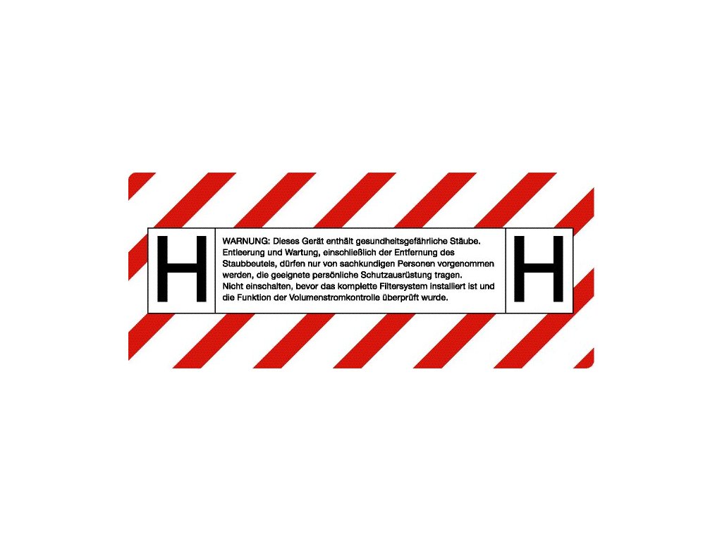 ApplicationArea 1: | Bezpečnostný vysávač prachovej triedy H na odstraňovanie zdraviu škodlivého a rakovinotvorného prachu |