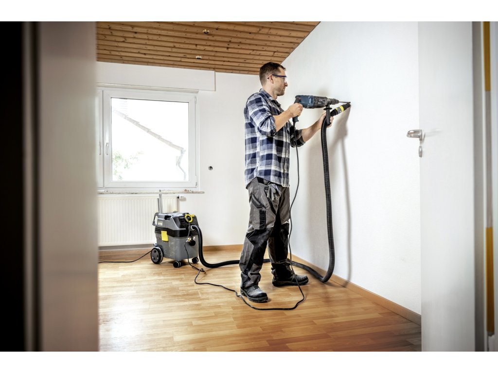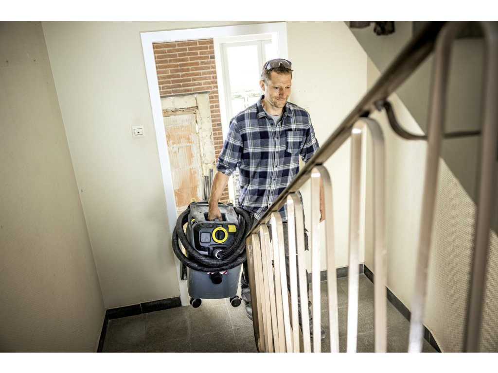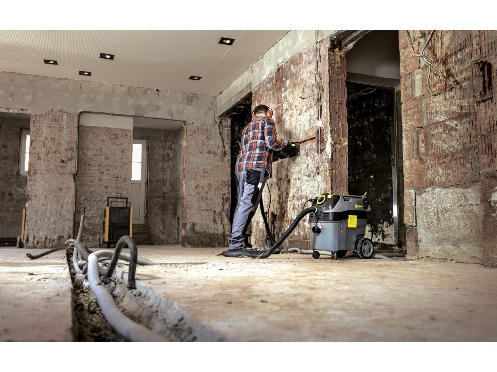 Bezpečnostný vysávač NT 30/1 Ap Te H od Kärcher zaujme plochým skladaným filtrom HEPA-H 13 zo sklolaminátu. To umožňuje jeho použitie na odsávanie vysoko nebezpečných a karcinogénnych druhov prachu v triede prachu H, ako je azbest, olovo a plesne, ktoré vznikajú v dielňach a ešte viac na stavbách pri renovačných prácach. Vysávač zaručuje filtračnú účinnosť 99,995 % a s odstraňovaním jemného prachu pomocou výkonnej turbíny si dá ľahkú prácu. Vďaka integrovanej zásuvke prístroja s automatickým štartom a antistatickým systémom (s vodivým príslušenstvom) je ideálny na odsávanie priamo z elektrického náradia, ktoré vytvára prach. Vysávač je vďaka vysokému saciemu výkonu použiteľný pre široké spektrum aplikácií: brúsne a renovačné práce, montážne alebo inštalačné práce, odstraňovanie kvapalín alebo odsávanie zo strojov a systémov. Keďže má vysávač odolný pogumovaný napájací kábel, je ideálny na použitie pri stavebných prácach a na renováciách.Dodatočné parametre