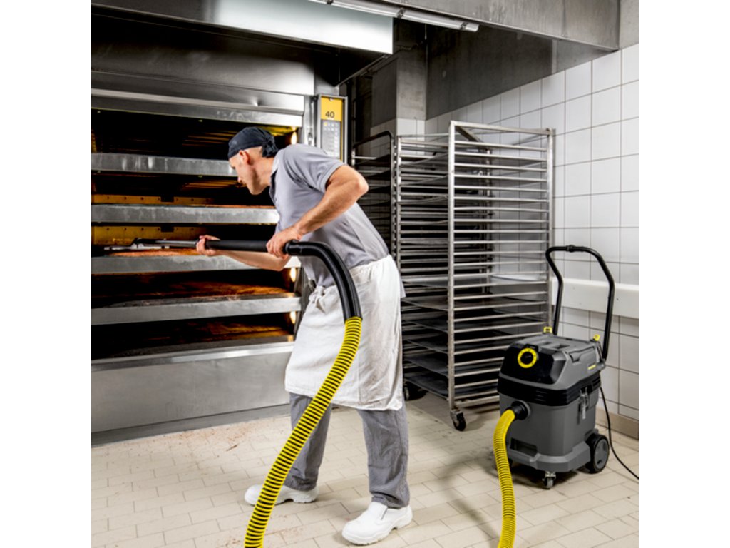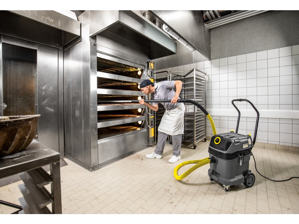 Vďaka nášmu vysávaču pre pekárne NT 40/1 Tact Bs môžu pekári a cukrári dýchať s úľavou. Či už podlahy, stroje alebo iné zariadenia – a s voliteľným príslušenstvom dokonca aj rúra: vysávač ľahko zvládne všetky výzvy, ktoré ho čakajú v pekárni. Vďaka robustnému kovovému zapínaniu je certifikovaný ako prístroj odolný voči výbuchu, a je preto vhodný aj na vysávanie potenciálne nebezpečného múčneho prachu. Automatické čistenie filtra Tact nielenže zaisťuje trvalo vysoký sací výkon, ale umožňuje aj vysávanie veľkého množstva jemného prachu. Okrem toho sa vysávač s centrálne umiestneným otočným spínačom ľahko ovláda, vydrží aj pri náročných prácach bez poškodenia vďaka robustnej nádobe a vďaka ergonomickému posuvnému držadlu sa mimoriadne ľahko prenáša.Dodatočné parametre