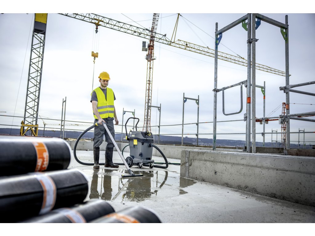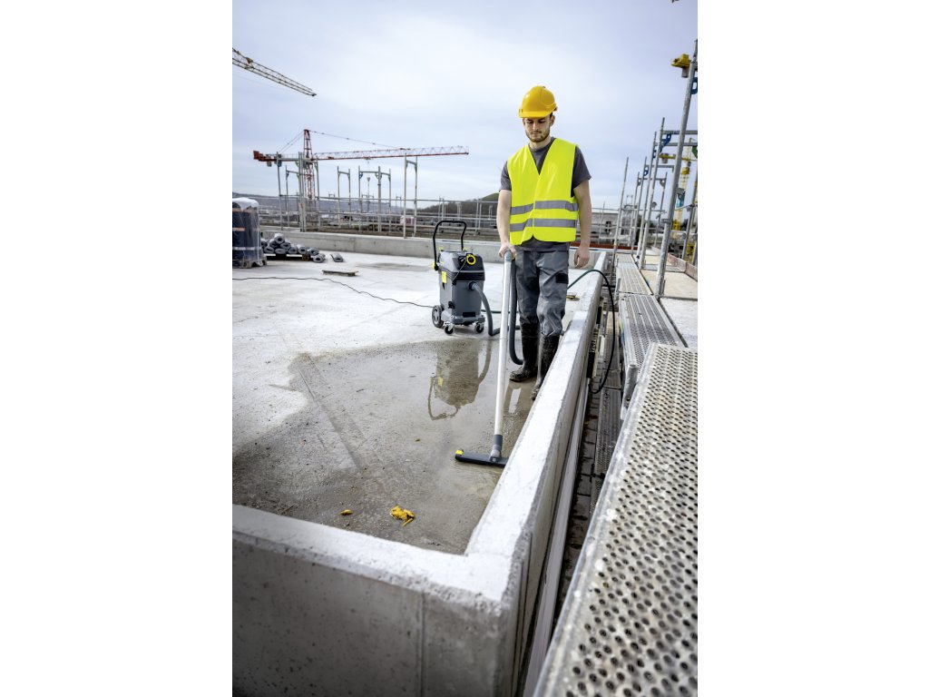 Či už na staveniskách alebo v priemyselných závodoch, mokro-suchý vysávač NT 50/1 K od spoločnosti Kärcher je špeciálne navrhnutý na rýchle odstránenie veľkých objemov vody. Vďaka výkonnému likvidačnému čerpadlu zvládne viac ako 300 litrov špinavej vody za minútu, vrátane hrubých nečistôt do veľkosti častíc 20 milimetrov. Štandardná spojka Geka zaisťuje jej kompatibilitu s týmto široko používaným spojovacím systémom pre vodné hadice. Turbína a likvidačné čerpadlo sú chránené pred poškodením alebo upchatím účinnými filtrami na hrubé nečistoty, ktoré zabraňujú nasatiu malých častí, kameňov, lístia alebo zvyškov stavebného materiálu. Kovové riadiace kolieska na robustnej 50-litrovej nádobe a plynule nastaviteľná posuvná rukoväť zaisťujú bezproblémovú prepravu vysávača NT 50/1 K z vozidla na miesto použitia a späť.Dodatočné parametre