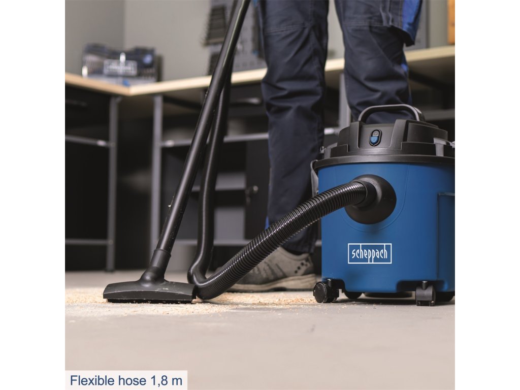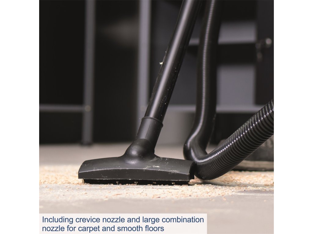 Scheppach NTS 16 je lehký, kompaktní, ale se sací silou 20 kPa velmi výkonný vysavač na mokré i suché vysávání. Kapacita jeho zásobníku je 16 l. Stroj je skvěle vybavený. Má má tělo z odolného plastu, čtyři otočná kolečka, velké madlo pro snadnou manipulaci, integrované držáky na 3 metry dlouhý kabel i příslušenství, integrovaný vývod pro funkci foukání, díky které vyfoukáte nečistoty i z těžko přístupných míst, 1,8 m dlouhou hadici, plochou hubici, hubici s tryskou a beznástrojový systém pro snadnou a rychlou výměnu filtru. Podlahová hubice má přepínání pro hladké podlahy a koberce. Díky dostatečné délce kabelu i hadice má vysavač velký akční rádius, a protože je malý a velmi lehký, snadno se ovládá a nepotřebuje ani mnoho místa na skladování. Vysavač se dodává včetně prachového vaku a pěnového filtru. Skvěle hodí do domácností, dílen, garáží i pro potřeby řemeslníků. Příslušenství: Sací hadice 1,8 m, 3-dílná plastová trubka O 32 mm, podlahová hubice, štěrbinová hubice, prachový sáček, pěnový filtr Kontaktní údaje výrobce / dovozce / zplnomocněného zástupce výrobce v EU: Scheppach GmbH Günzburger Str. 69, 89335 Ichenhausen, Germany email: service@scheppach.comDodatočné parametre