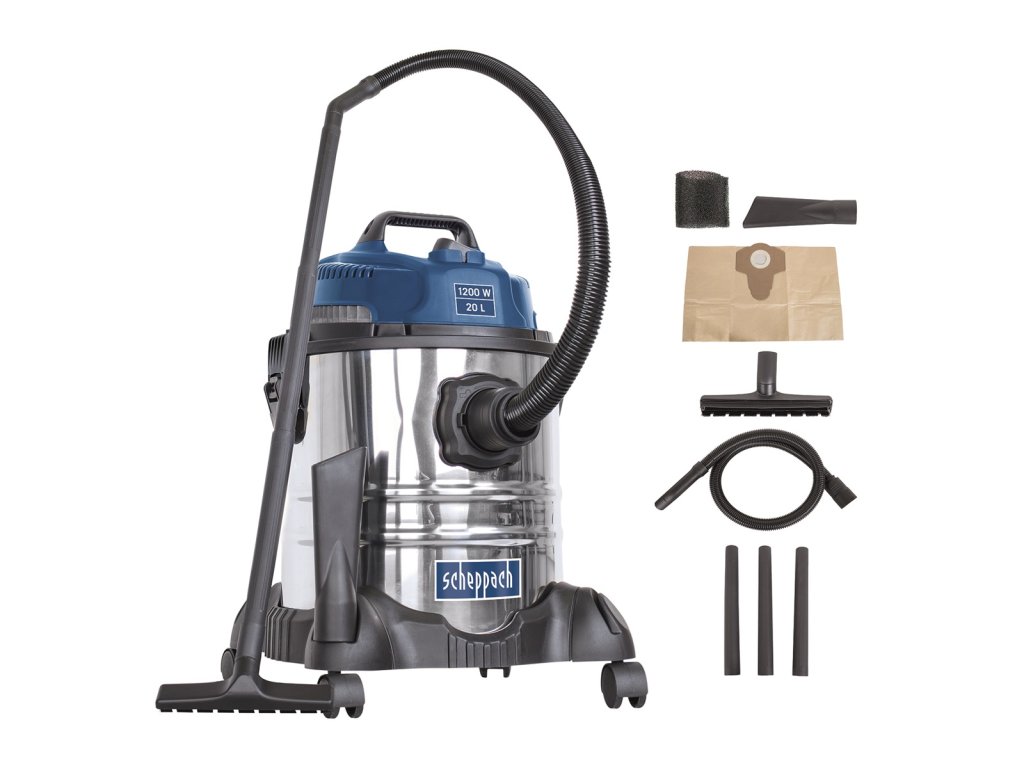 priemyselný vysávač na suché / mokré vysávanie 20 l Scheppach ASP 20 ES + 9 mm nôž odlamovací, plastový