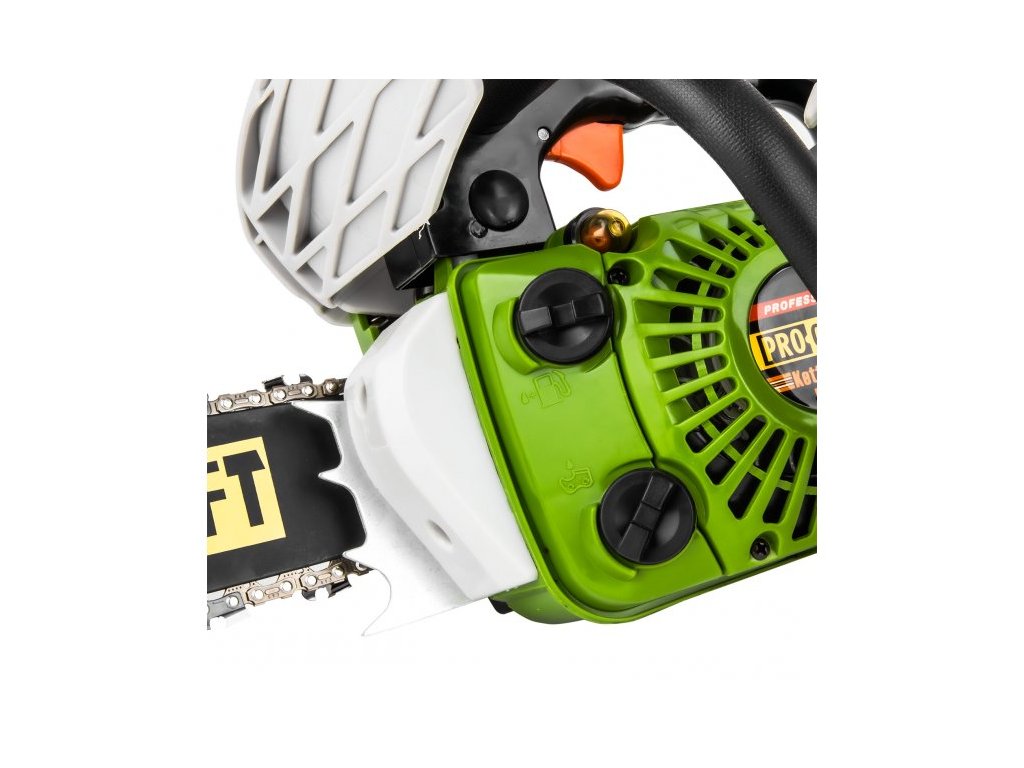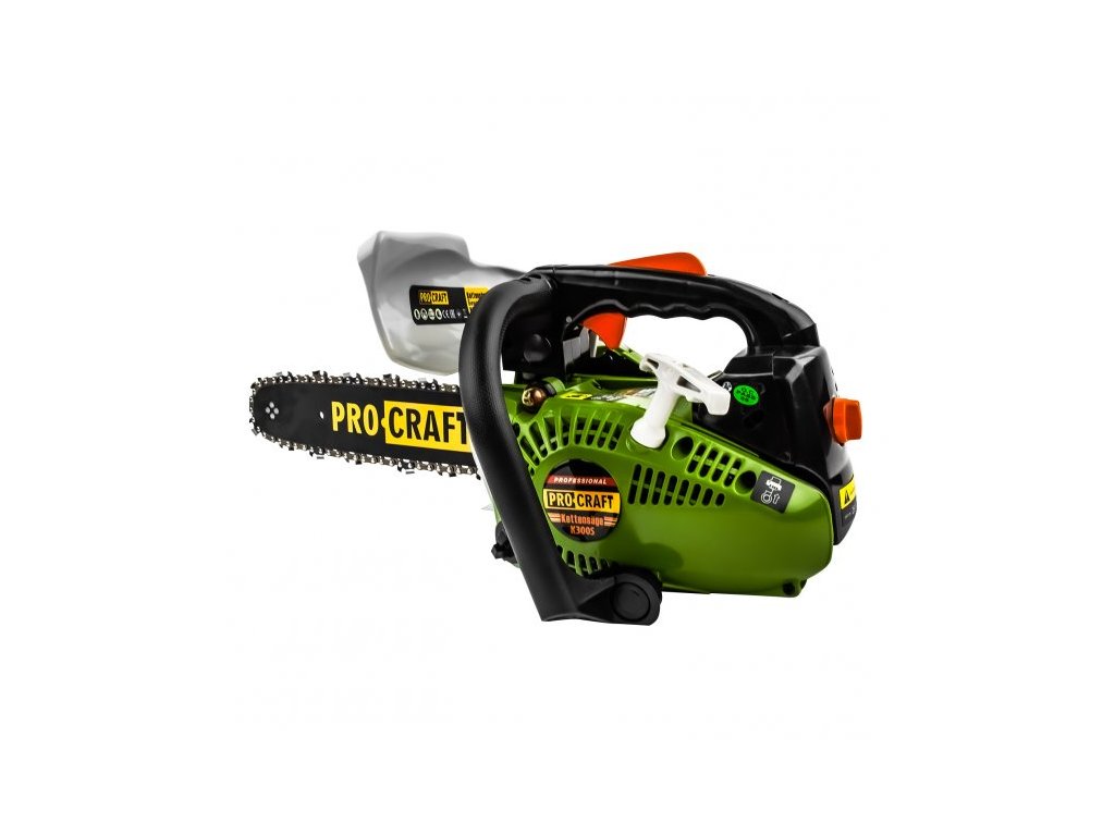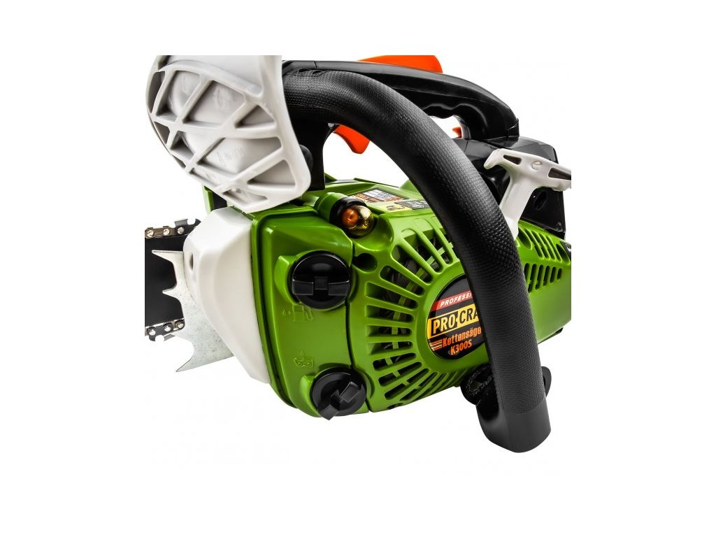 Benzínová řetězová pila Procraft K300S je určena k prořezávání stromů, zpracování palivového dřeva a tesařských pracích. Benzínový motor s příkonem 900W a vysokých otáček až 11000 za minutu zaručuje dlouhou bezporuchovou práci. Automatický systém mazání řetězu a kvalitní lišta zvyšují spolehlivost stroje. Nízká hmotnost a kompaktní rozměry usnadňují a zrychlují práce.Balení karton.