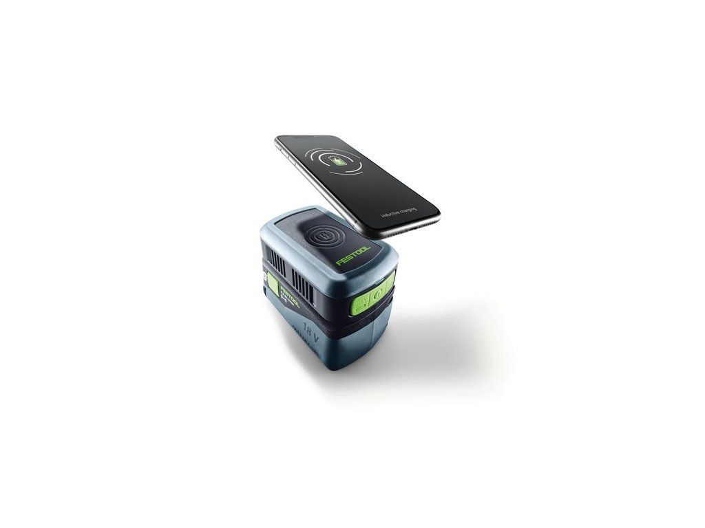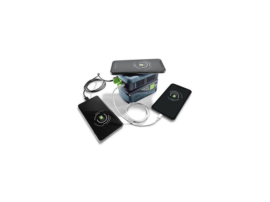 - Kompatibilná: Ako klasické akumulátorové náradie sa dá nabíjačka telefónov nasunúť na akýkoľvek 18 V akumulátor Festool na powerbanku (s výnimkou akumulátora Ergo s kapacitou 3,0/3,1 Ah)