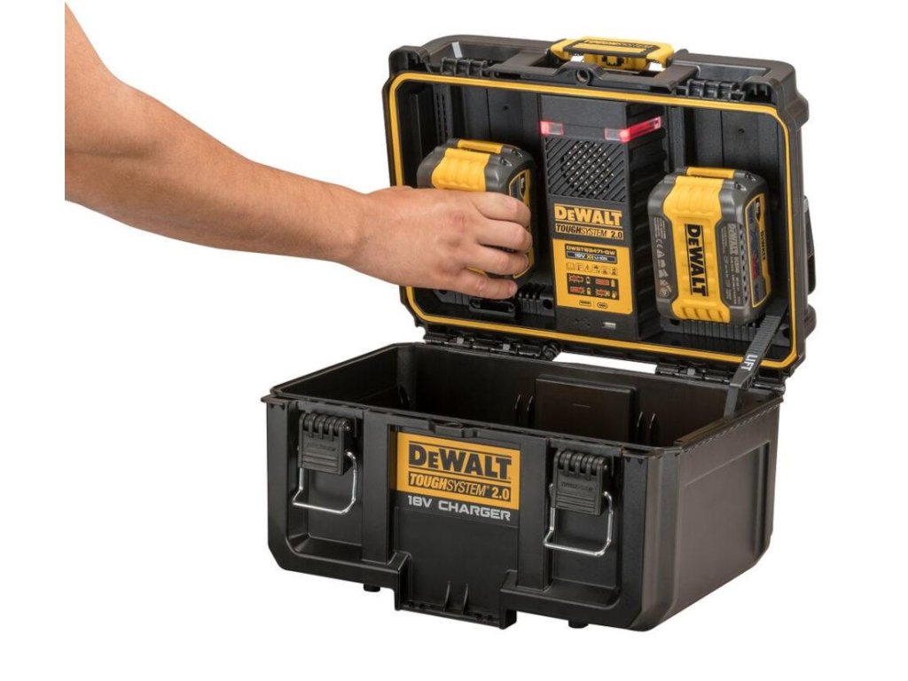 - Nabíjačka TOUGHSYSTEM 2.0 Dual Port poskytuje dokonalé riešenie pre skladovanie a nabíjanie batérií v bezpečnom boxe, ktorý chráni jeho obsah pred vodou a prachom.