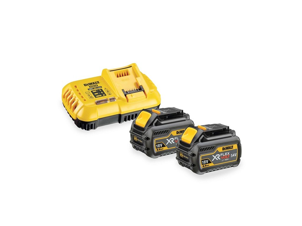 • Štartovacia súprava obsahujúca batérie XR FLEXVOLT 54 V a univerzálnu nabíjačku DCB118