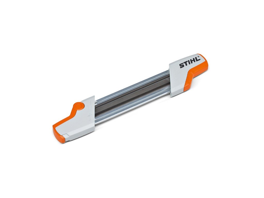 Na brúsenie reťazí. Zub a obmedzovač hĺbky rezu môžeme nabrúsiť v jednom pracovnom úkone jednoducho a rýchlo. Dodávané s okrúhlym a plochým pilníkom.