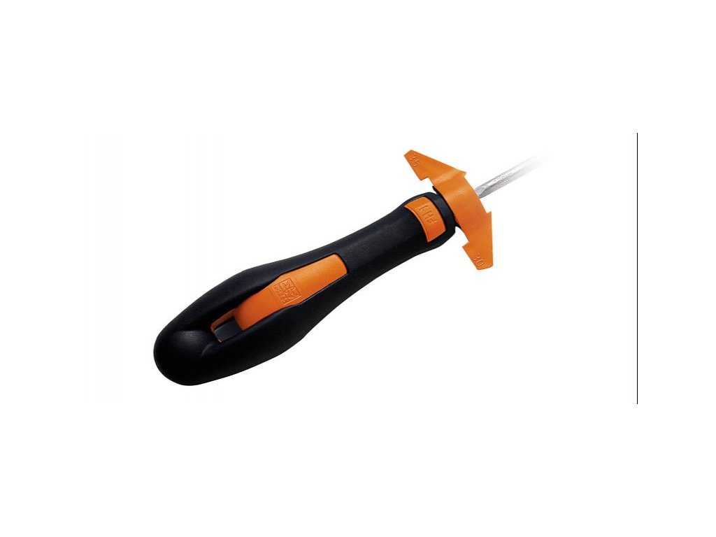 2-dielna násada s uvedením uhlov ostrenia pre všetky okrúhle pilníky.