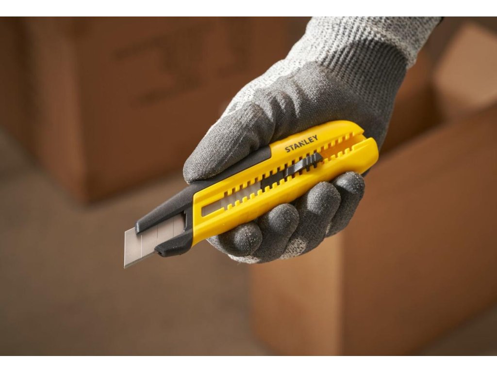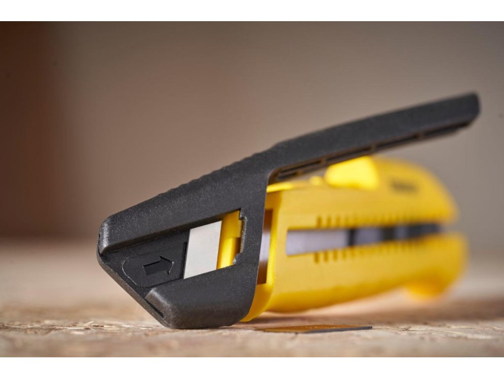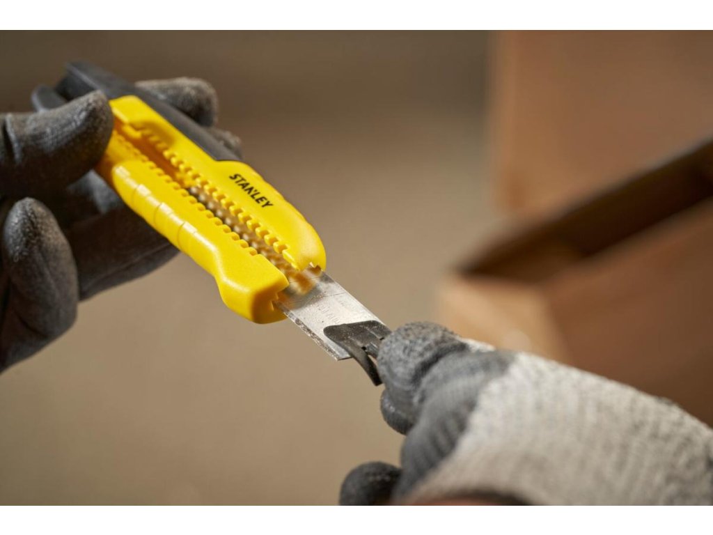 - Dodáva sa s čepeľou šírky 18 mm z uhlíkovej ocele a je kompatibilný s inými čepeľami STANLEY® 18 mm.