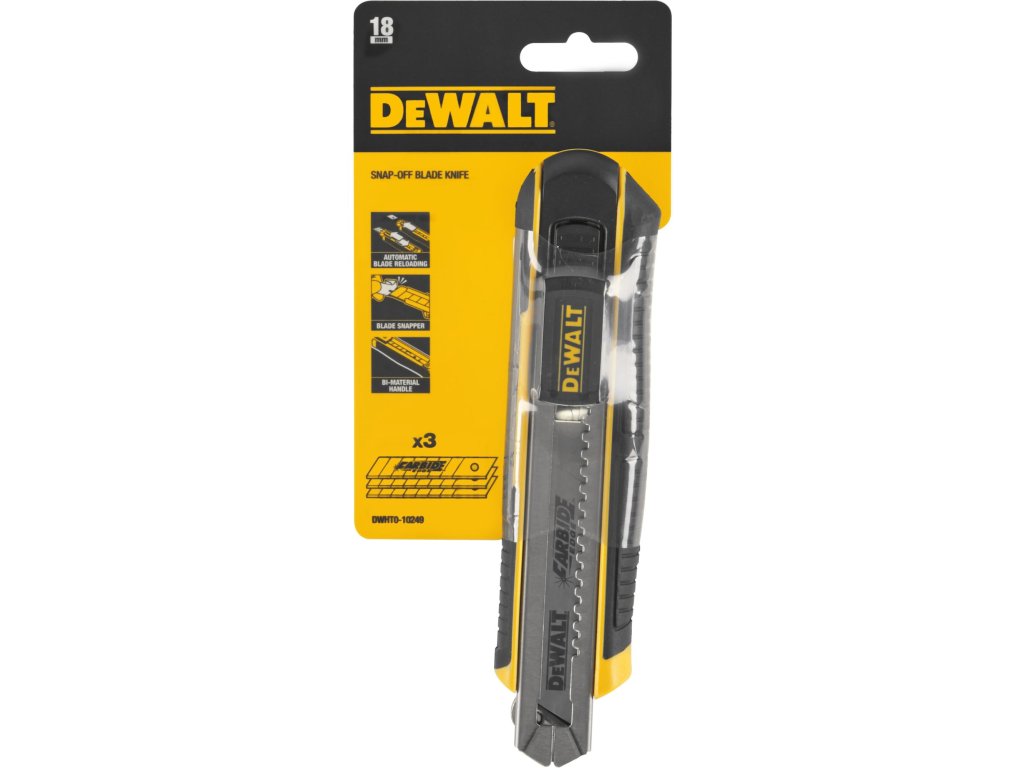 Nôž plastový odlamovací 18mm +3 karbidové čepele DEWALT DWHT0-10249