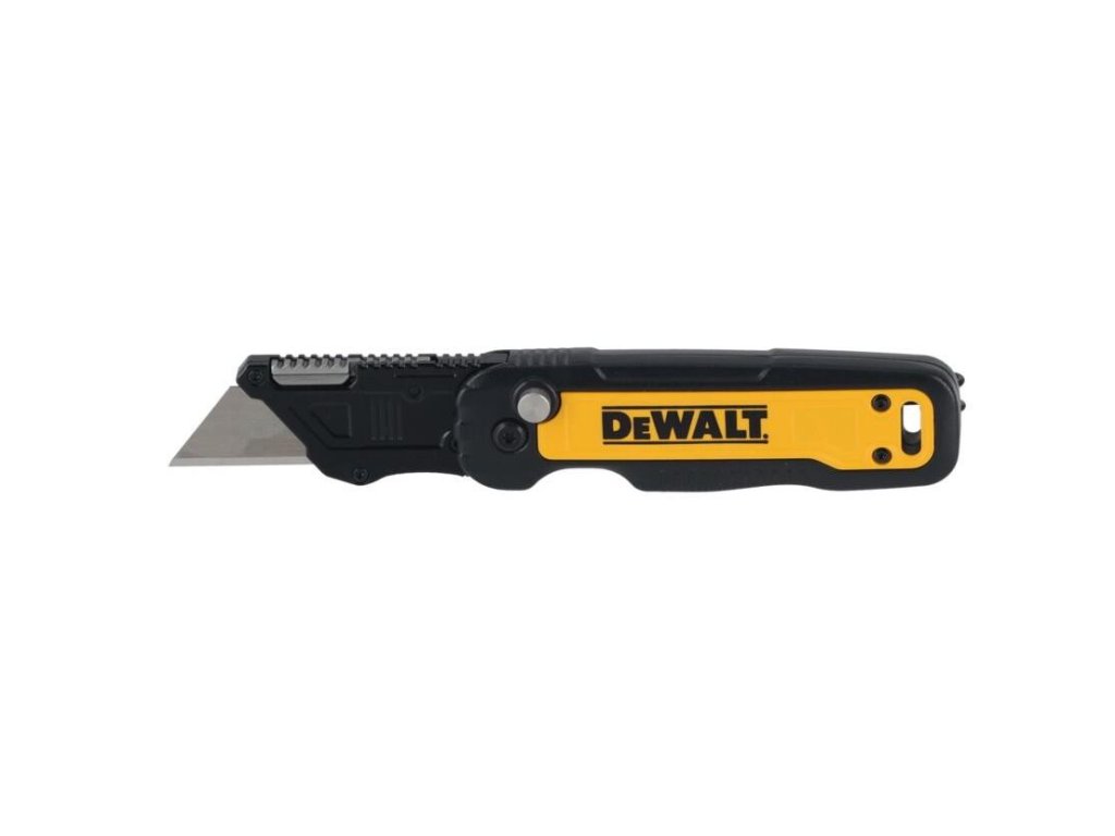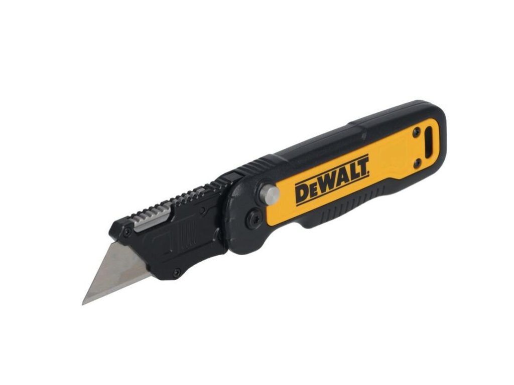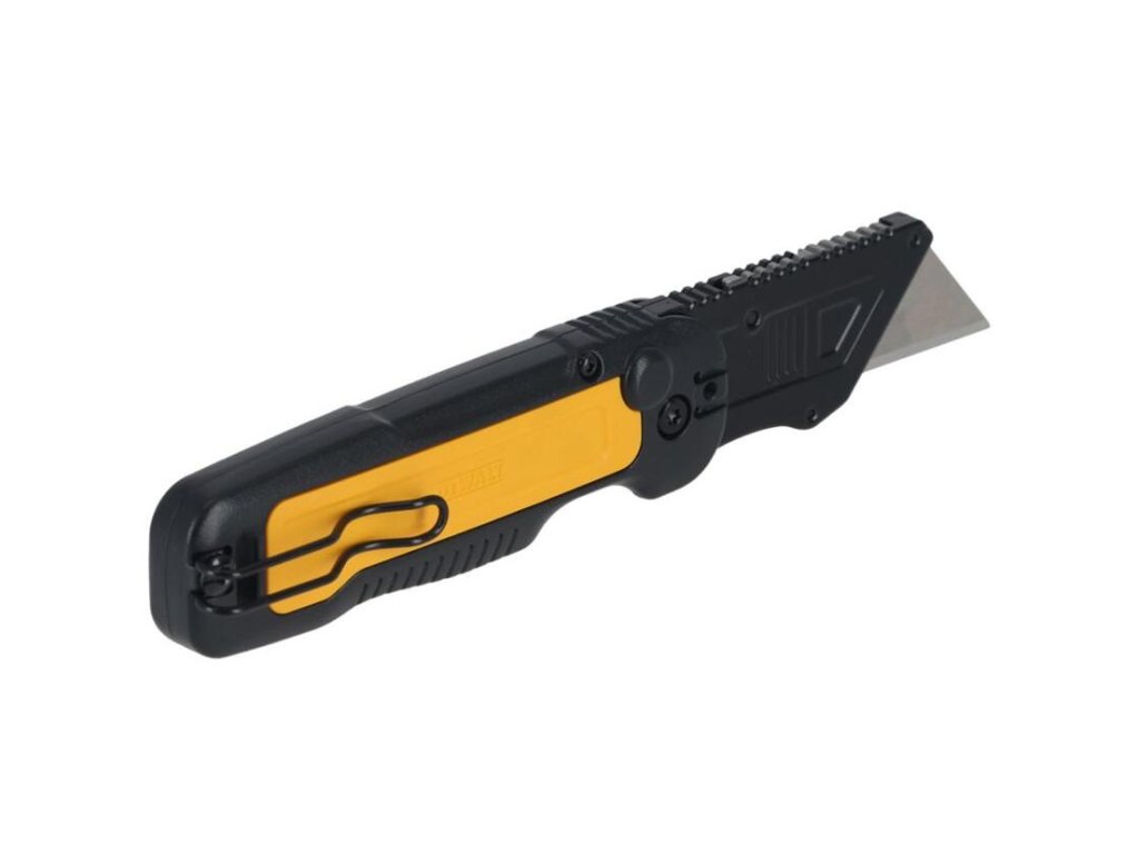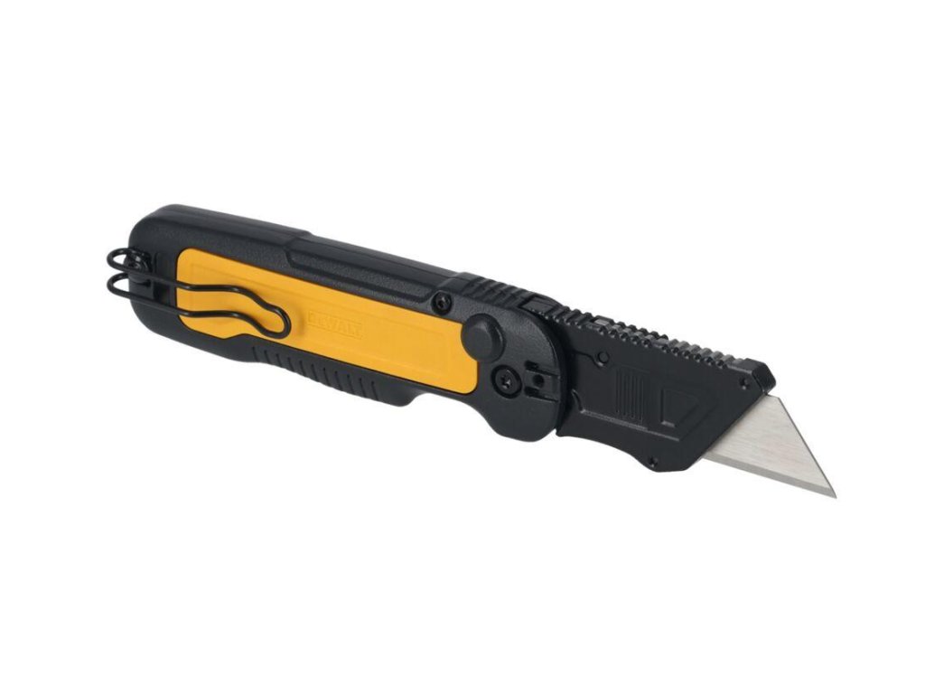 - Univerzálny zatvárací nôž DEWALT s pevnou lichobežníkovou čepeľou.