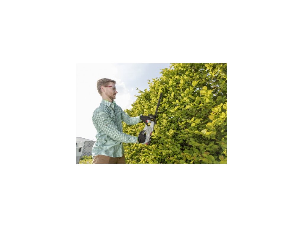 Akumulátorové nožnice na živý plot AL-KO HT 2000 – nezávislé, pohodlné, ľahké S akumulátorovými nožnicami na živý plot AL-KO HT 2000 s diamantom brúsenou čepeľou je pre vás strihanie živých plotov jednoduché – bez ohľadu na elektrinu alebo benzín. Veľmi ľahké a od siete nezávislé nožnice na živý plot vám poskytujú pohodlný rozsah činnosti bez zamotaných káblov a eliminuje riziko náhodného prestrihnutia elektrického kábla. HT 2000 je napájaný batériou z rodiny AL-KO 18 V. V prípade potreby môžete s jednou a tou istou batériou prevádzkovať rôzne zariadenia AL-KO 18 V – a ušetriť tak peniaze. Technické údaje akumulátorových nožníc na živý plot AL-KO HT 2000 Protibežná, diamantom brúsená bezpečnostná čepeľ má reznú dĺžku 45 cm a čistý rez bez zaseknutia. Hrúbka rezu je 14 mm. Akumulátorové nožnice na živý plot HT 2000 s hmotnosťou len 2,0 kg vrátane batérie sú výrazne ľahšie ako ktorýkoľvek benzínový model. Zariadenie s elektromotorom s nízkymi vibráciami a dobrým rozložením hmotnosti, ako aj ergonomickými rukoväťami umožňuje dokonale vyvážené vedenie zariadenia a prácu bez únavy. Vysokokvalitné, robustné plastové puzdro zaručuje dlhú životnosť. Na jedno nabitie AL-KO 18 V Li-ion akumulátora 20 V/2,5 Ah môžete pracovať až 45 minút. Prázdnu batériu je možné dobiť za cca 50 minút. Li-ion batéria je dlhotrvajúca, nenáročná na údržbu, nedochádza k samovybíjaniu a nemá pamäťový efekt. Batéria je vhodná pre všetky zariadenia z rodiny AL-KO 18 V (nie je vhodná pre 18 V Bosch Home&Garden). Kúpte si akumulátorovú kosačku na trávu AL-KO HT 2000 a alternatívy Vyžínač trávy HT 2000 si kúpte už teraz v našom internetovom obchode alebo u niektorého z našich špecializovaných predajcov.Ľahké akumulátorové nožnice na živý plot 20 V / 2,5 Ah Li-Ion z rodiny AL-KO 18 VVrátane batérie a nabíjačkyDiamantom brúsená bezpečnostná čepeľ dlhá 45 cmPráca bez únavy vďaka dobrému vyváženiu prístroja a tichej prevádzkeOdolné, robustné puzdro s pogumovanou rukoväťou pre pohodlnú prácuVrátane ochranného krytu čepeleDodatočné parametre
