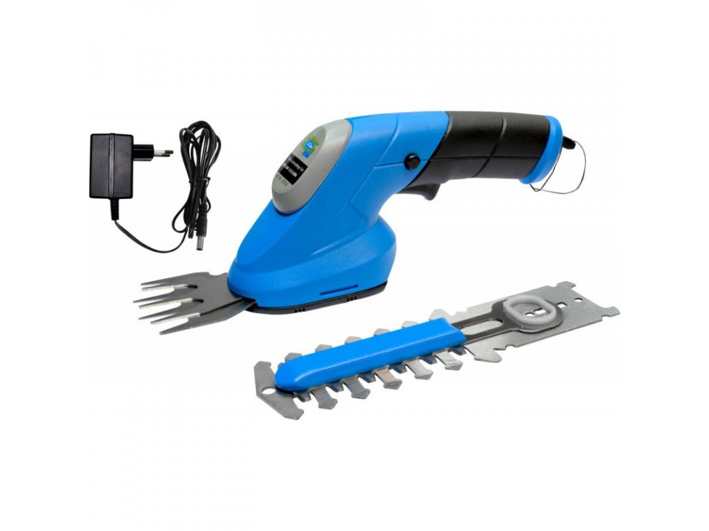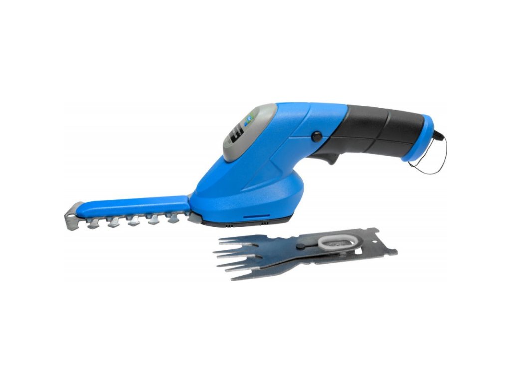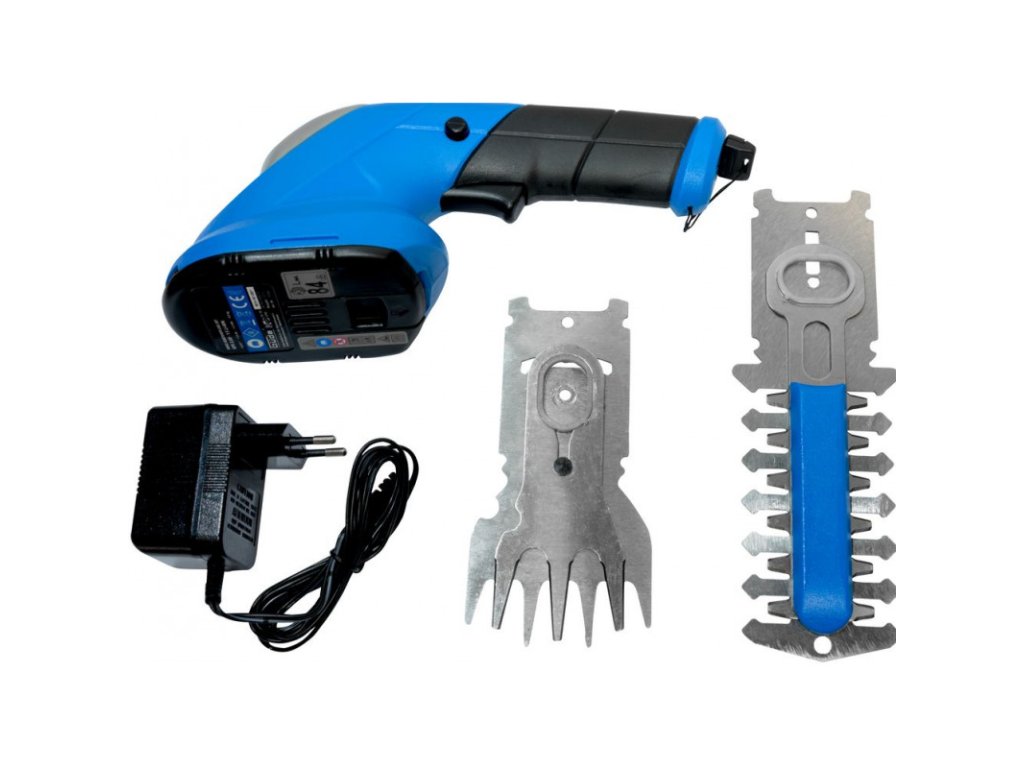 Záhradnícka sada obsahuje násadu nožníc na trávu, násadu nožníc na kroviny/živý plot, integrovanú batériu 3,6 V / 1,5 Ah, 3,5 h nabíjačku, mäkkú rukoväť. Rýchla výmena násady bez použitia náradia.
