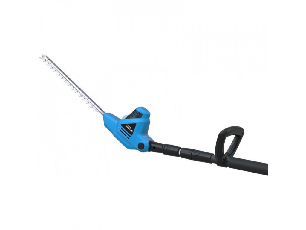 Teleskopické nožnice s bezpečnostným spínačom zabraňujúcim neúmyselnému zapnutiu. Laserom rezané nože, kovový prevod, odľahčenie ťahu kábla. Mäkká rukoväť, prídavná rukoväť. Nôž s funkciou Quick Stop (rýchle zastavenie). Vrátane ochranného krytu lišty a popruhu na prenášanie. Vhodné na starostlivosť o porast až do výšky približne 4 - 4,5 m, v závislosti od výšky postavy.