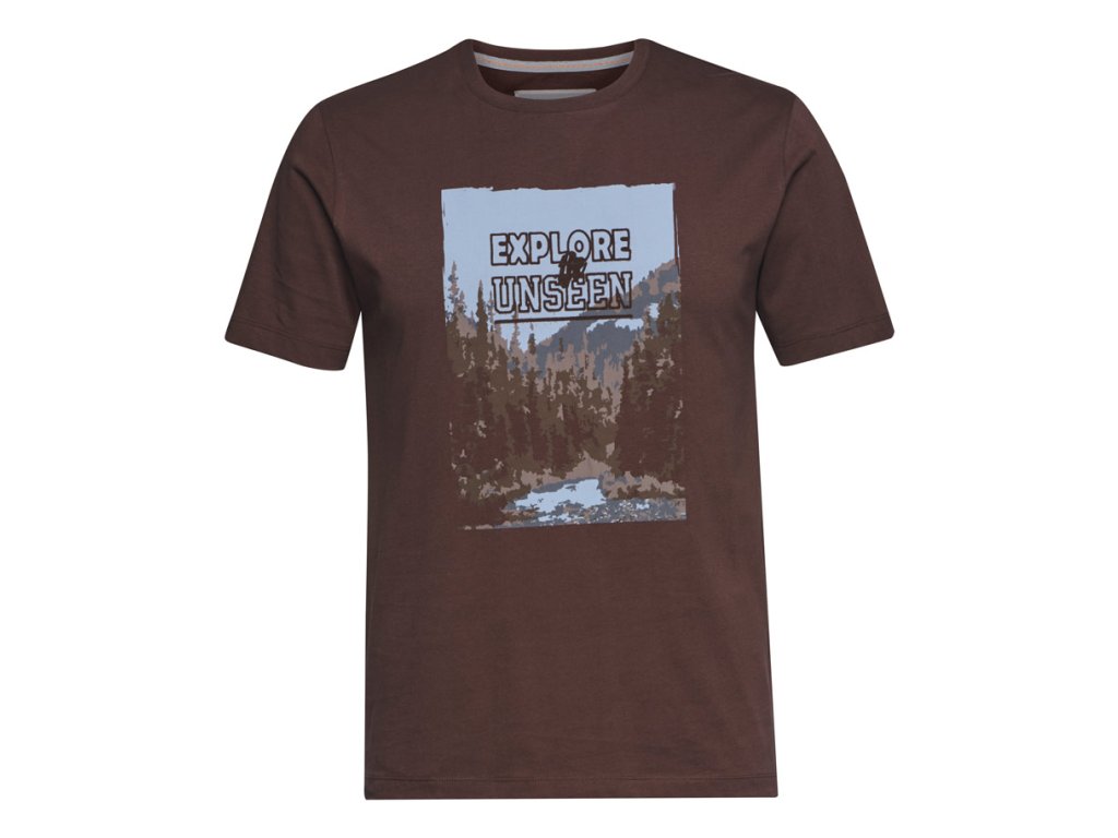Tričko pre dobrodružné povahy. Veľká, farebná potlač na prednej strane. Veľmi príjemné na nosenie. 100% bavlna. Hnedá farba.