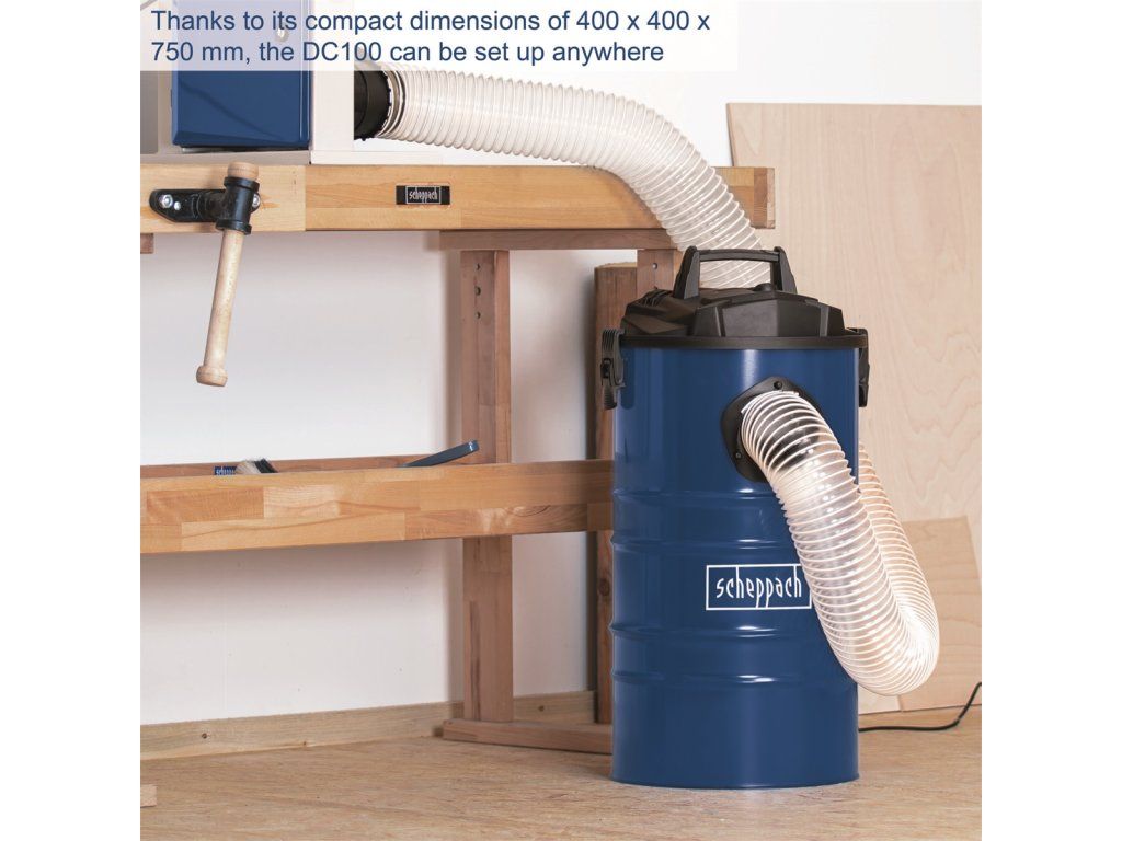Odsavač pilin Scheppach DC 100 je velmi užitečný pomocník. Chrání před nepříjemným prachem nejenom Vás, ale i váš stroj, a tak významně prodlužuje jeho životnost. Ne každý má ovšem v dílně dostatek prostoru na velký odsavač nebo se mu jen nechce manipulovat s velkým strojem. Pro tyto uživatele je tento unikátní malý odsavač ideální. Kompaktní rozměry neznamenají jakoukoliv újmu ve výkonu. Robustní tělo z oceli, rukojeť pro snadné přenášení a filtr se schopností filtrace částic již od průměru 0,5 mikrometru. Silný motor 1200 W Vás ohromí svojí silou. V odsavači DC 100 získáte skladný, ale plnohodnotný odsavač. Jako příslušenství dostanete zdarma čtyřdílnou redukci na různé průměry napojení, včetně malých strojů a sadu 4 filtračních vaků. Kontaktní údaje výrobce / dovozce / zplnomocněného zástupce výrobce v EU: Scheppach GmbH Günzburger Str. 69, 89335 Ichenhausen, Germany email: service@scheppach.comDodatočné parametre