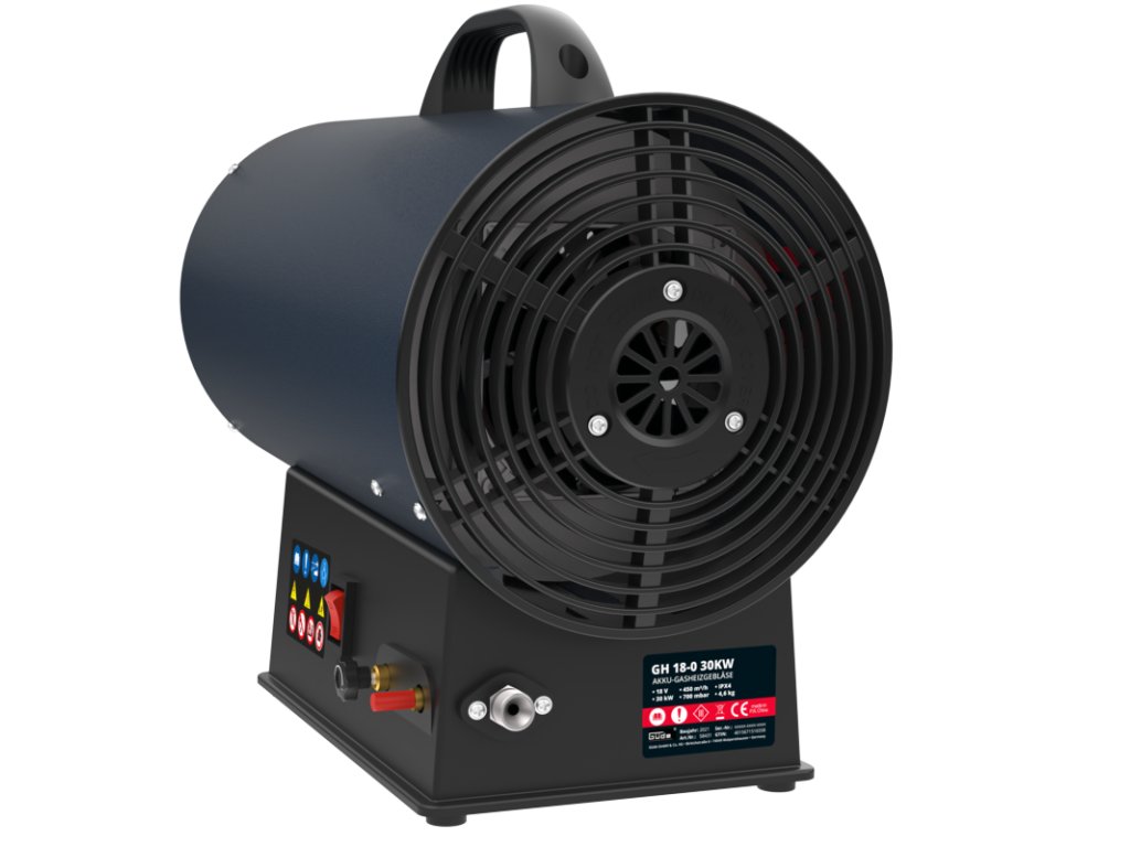 Plynový ohrievač s aku ventilátorom GH 18-0 30 kW Güde 58431 + 9 mm nôž odlamovací, plastový