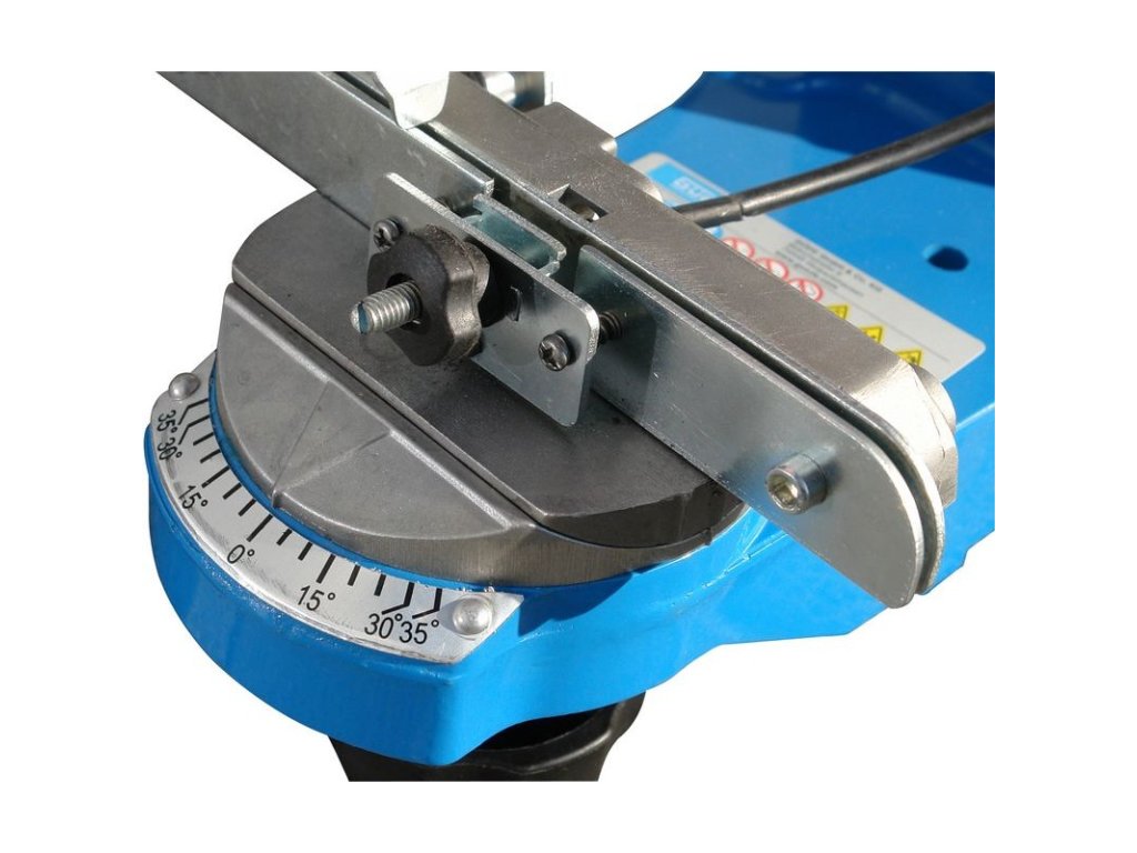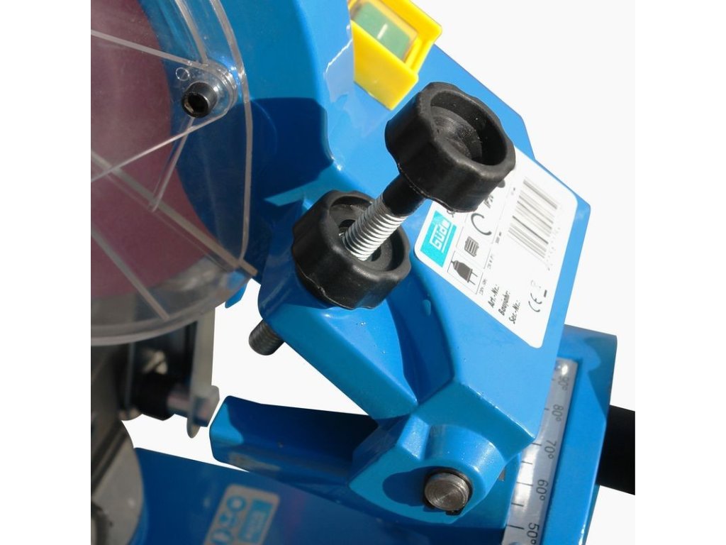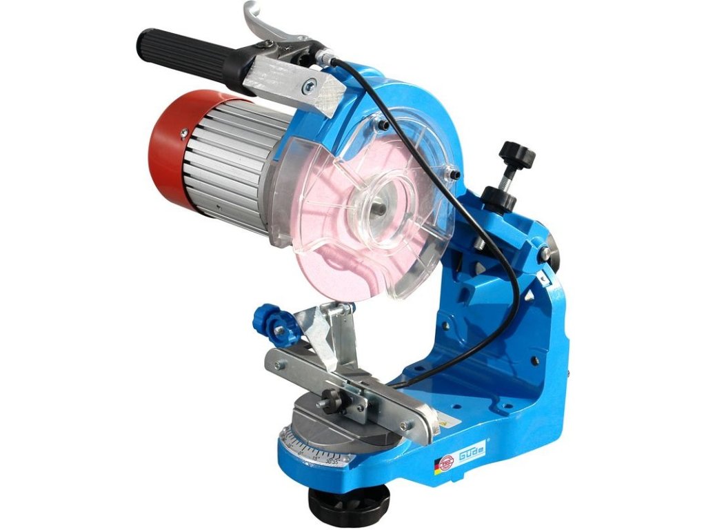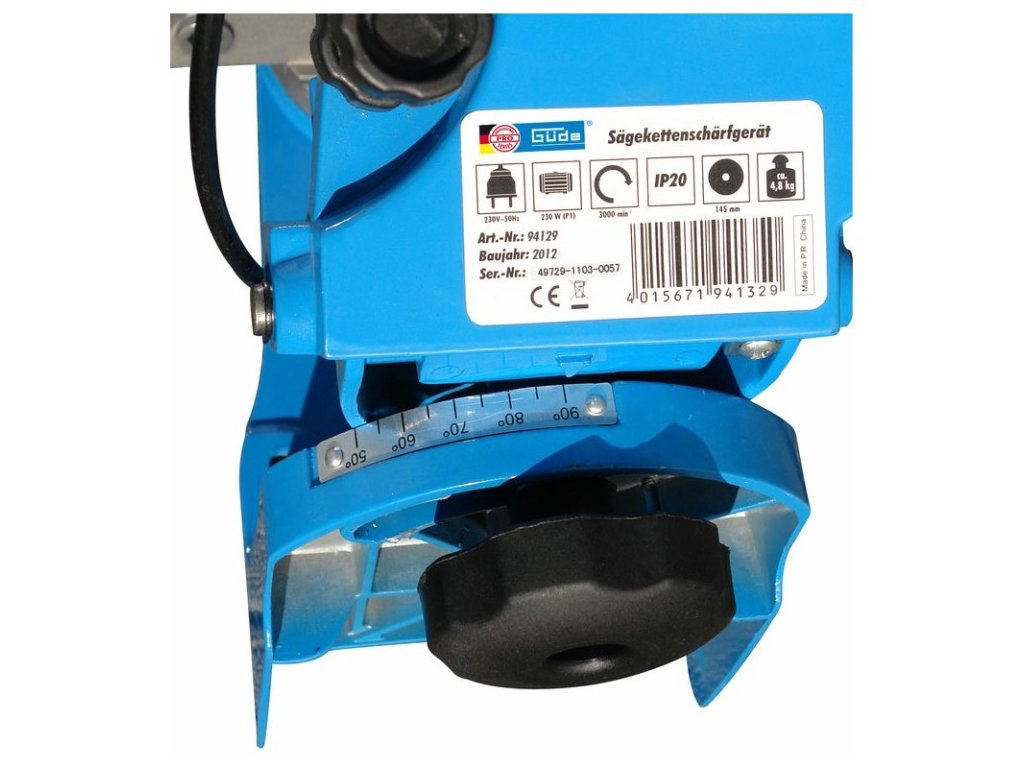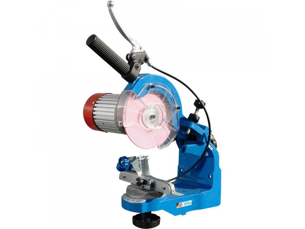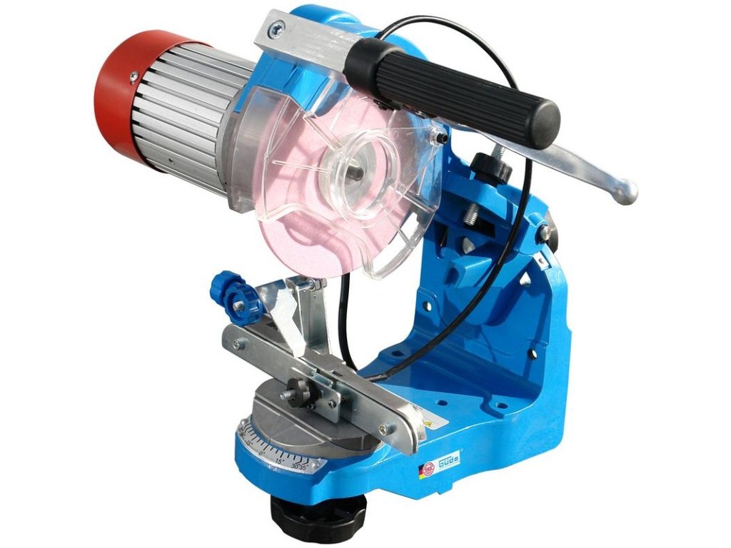 Brúska na brúsenie všetkých bežných typov pílových reťazí. Uhol ostrenia 2 x 35°, nastaviteľný pomocou ručného kolieska. Vodiaca lišta reťaze s variabilne nastaviteľným dorazom, rýchle napnutie reťaze. Na stacionárnu montáž, nábehový uhol ostria 50° - 90°, nastaviteľný pomocou ručného kolieska. Obmedzenie hĺbky brúsenia. Pracovné svetlo LED (0,5 W / E14). Uhol sklonu: 2 x 10°.