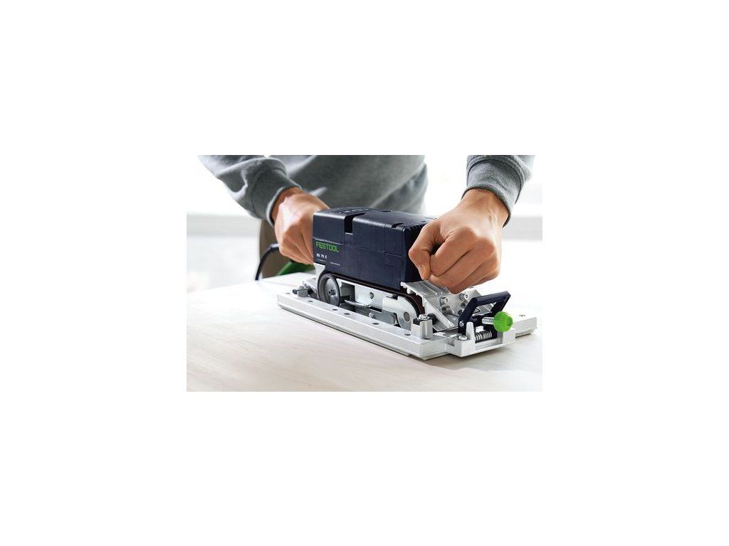 Praktická pásová brúska. Či už pri hrubom alebo jemnom výbruse, pri lineárnom brúsení sú pásové brúsky od firmy Festool spoľahlivým partnerom. Pritom prináša ich princíp fungovania skutočnú výhodu. Pretože sa vždy pracuje len v jednom smere – paralelne voči textúre – nevznikajú žiadne kruhové stopy po brúsení. To zabráni náročnému a zaťažujúcemu dodatočnému opracovávaniu. Pri šírke 75 mm je pásová brúska BS 75 mimoriadne praktická.