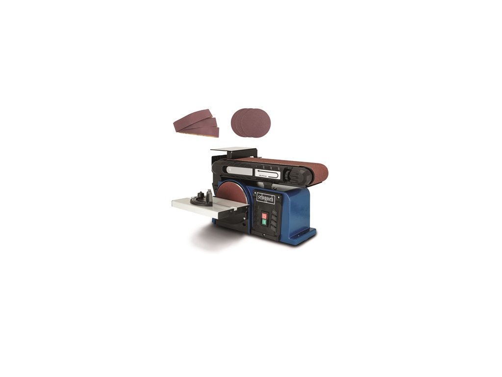 - Brúsne materiály: Používa štandardné rozmery brusiva (pás 100x915 mm a kotúč Ø 150 mm na suchý zips), čo zabezpečuje jednoduchú dostupnosť náhradných dielov od rôznych výrobcov (napr. Scheppach, Güde atď.).