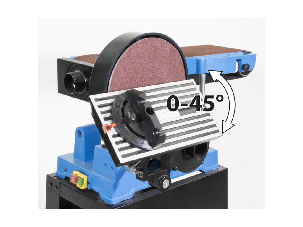 Tanierová a pásová brúska so sklopným pracovným stolom. Brúsny pás prestaviteľný horizontálne aj vertikálne, priečny doraz, hrdlo na externé odsávanie Ø 50 mm.Sieťové napätie: 230 VFrekvencia: 50 HzVýkon motora (P1): 1100 WRozmery brúsneho pásu: 1220 x 150 mmZrnitosť brúsneho pásu: 80 KRýchlosť pásu: 5,8 m/sPriemer brúsneho kotúča na suchý zips: 230 mmZrnitosť brúsneho kotúča na suchý zips: 120 KPracovná plocha (DxŠ): 375 x 150 mmDĺžka prípojného kábla: 2 mRozmery (DxŠxV): 720 x 525 x 1383 mmHmotnosť netto/brutto: 39,6 kg/41,5 kgDodatočné parametre