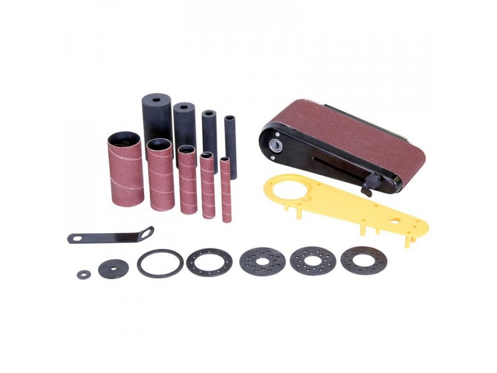 Vretenová a pásová brúska s osciláciou. Rýchle prestavenie bez náradia. Stôl prestaviteľný o 45°. Praktický priestor pre odkladanie príslušenstva a náradia. Vrátane 1 ks brúsneho papiera K80, 5 ks kladky: 2", 11/2", 1", 3/4", 1/2", 5 ks vložka do stola: 13, 19, 26, 38, 51 mm, 1 ks kladka pre brúsny pás, 1 ks kľúč.Sieťové pripojenie: 220 - 240 VFrekvencia: 50 HzOtáčky motora: 2000 min-1Výkon motora (P1): 450 WRozmery brúsneho pásu: 610 x 100 mmPripojenie odsávania vonkajší Ø: 38 mmHladina akustického výkonu LWA: 89 dBRozmery (DxŠxV): 470 x 420 x 460 mmHmotnosť netto/brutto: 12,5 kg/14,5 kgDodatočné parametre