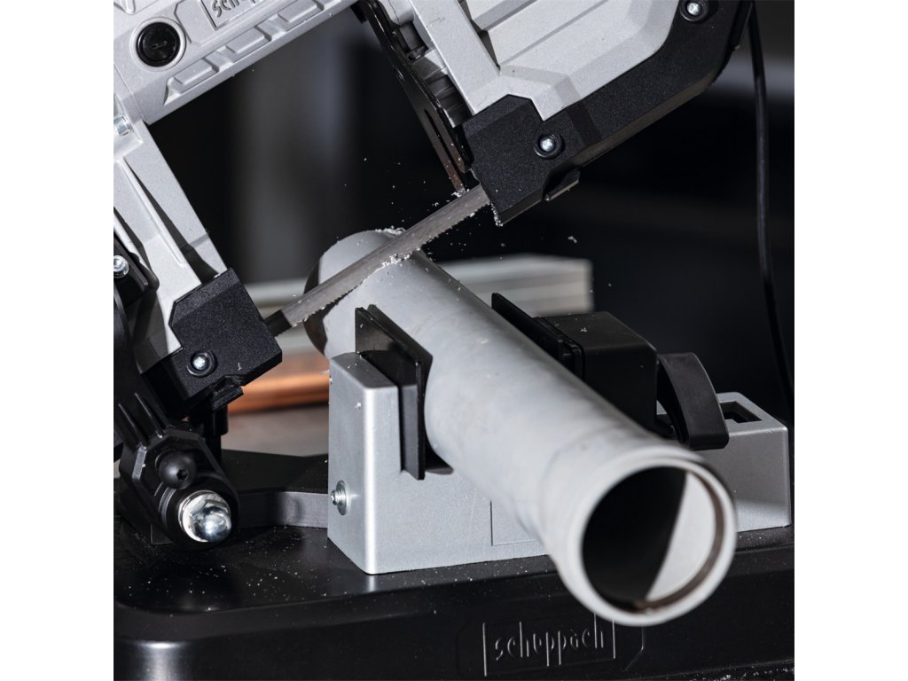 Scheppach MBS 1200 je skvělým nástrojem pro řezání kovových trubek a dalších kovových i plastových materiálů až do tloušťky 127 mm. Velkou výhodou této pily je její univerzálnost. Dá se použít jako stacionární nástroj, kdy je připevněna k podstavě nebo se dá volně používat bez podstavy, takže řezání již zamontovaných součástí nebo profilů v prostoru se stává hračkou. Díky elektronicky nastavitelné rychlosti řezání je pila vhodná na ocel, nerezovou ocel, železo, různé druhy slitin, měď, PVC, teflon apod. Pila má nastavitelný úhel řezu, nastavitelnou rukojeť, LED osvětlení a svěrák, jako součást základny. Díky své univerzálnosti je skvělým pomocníkem při řešení mnoha úkolů jak v dílně, tak mimo ni. Podstava i dva pilové pásy jsou součástí dodávky.Dodatočné parametre